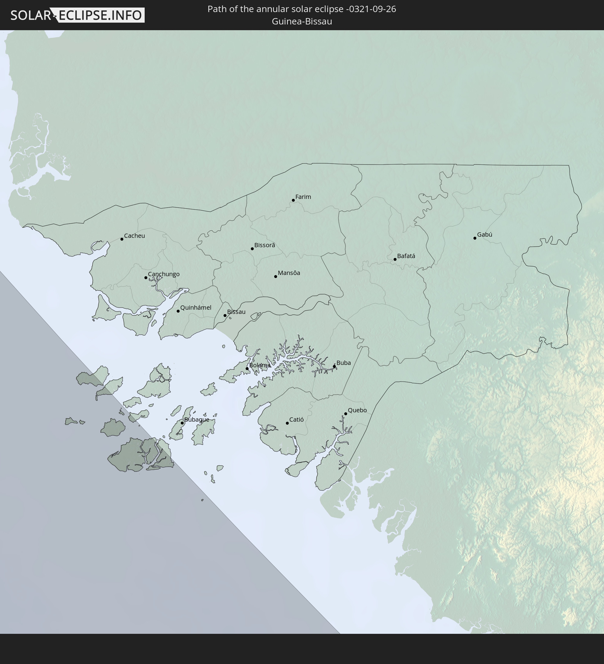 Die Sonnenfinsternis am 26.09.-0321 kann man in 132 Ländern als partielle Sonnenfinsternis beobachten.