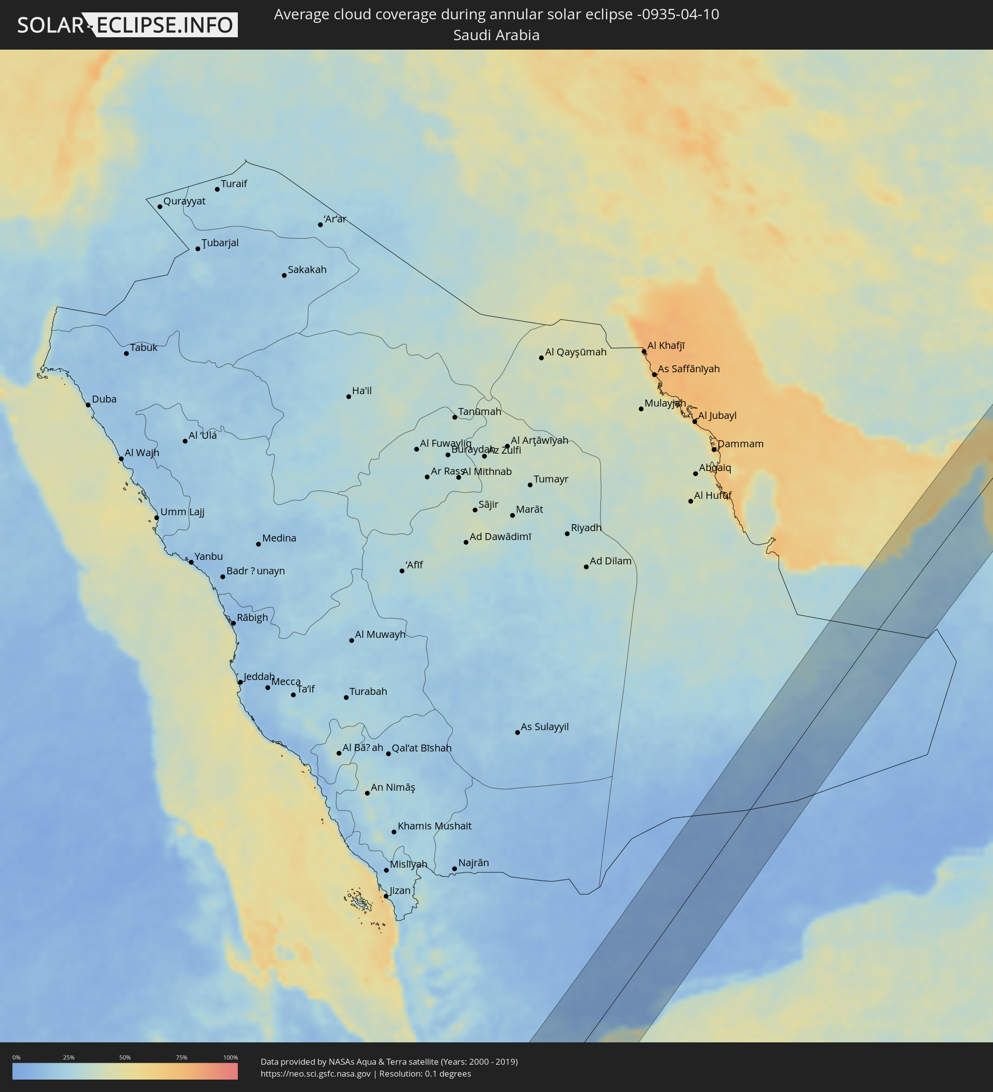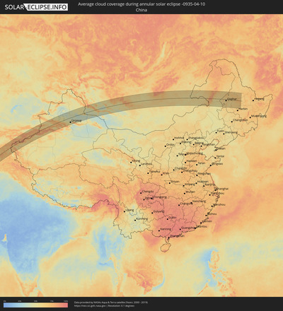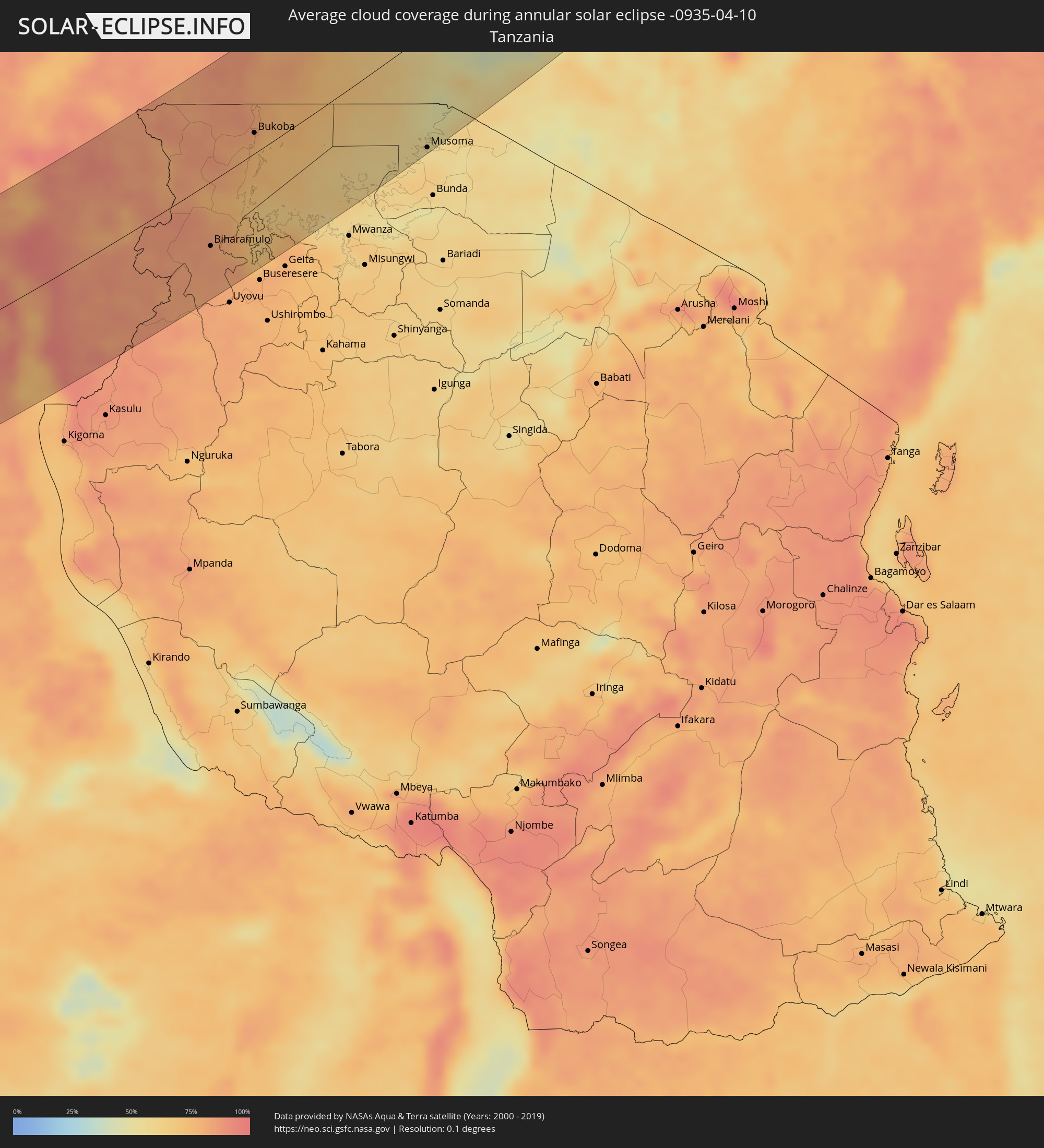 Die Sonnenfinsternis am 10.04.-0935 kann man in 131 Ländern als partielle Sonnenfinsternis beobachten.
