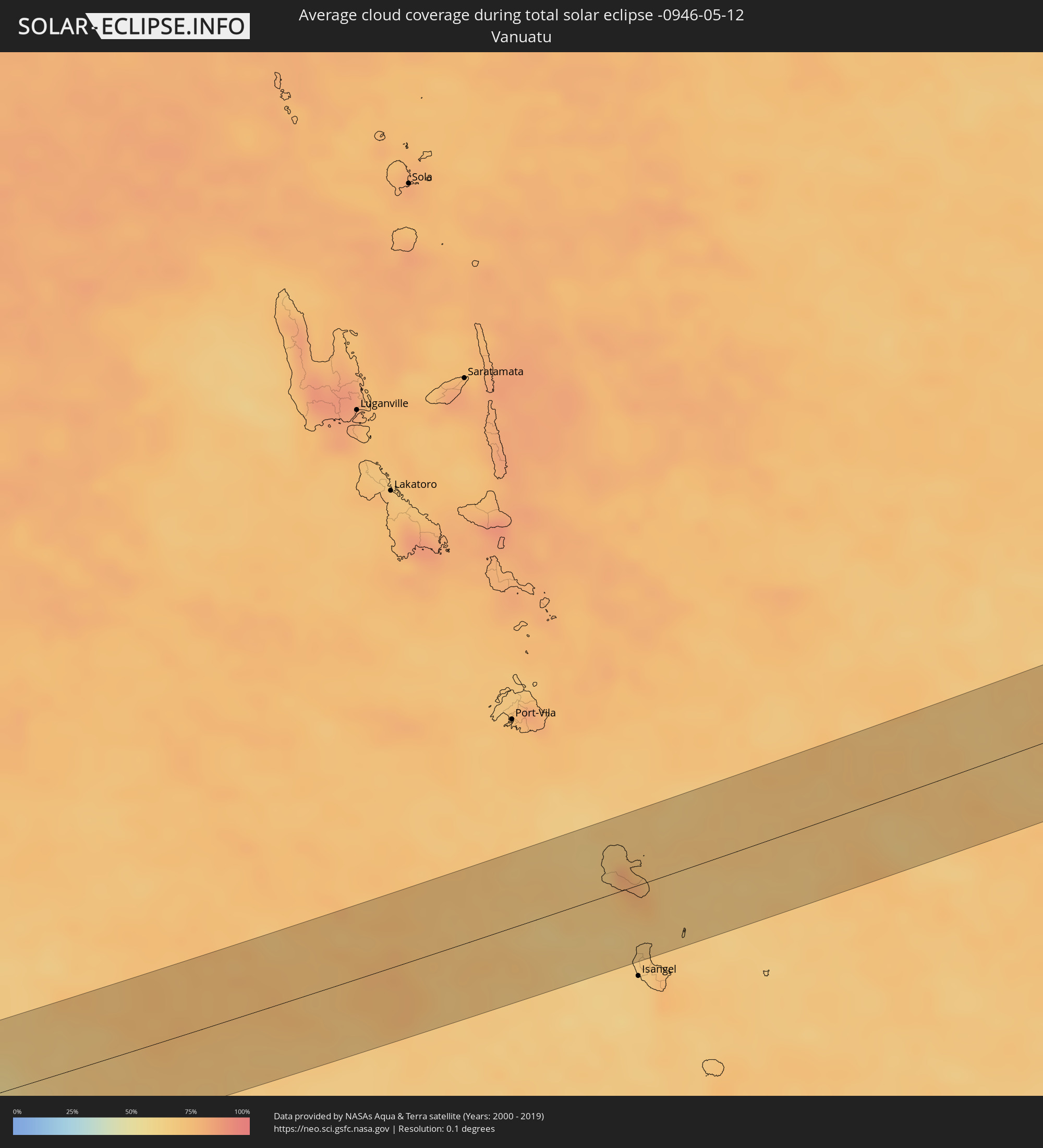 Wo ist der beste Ort, um die totale Sonnenfinsternis vom 12.05.-0946 zu beobachten?