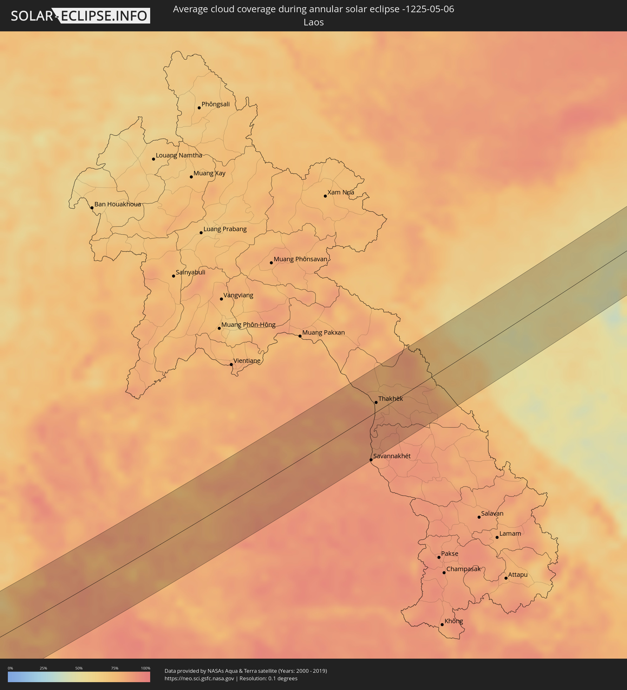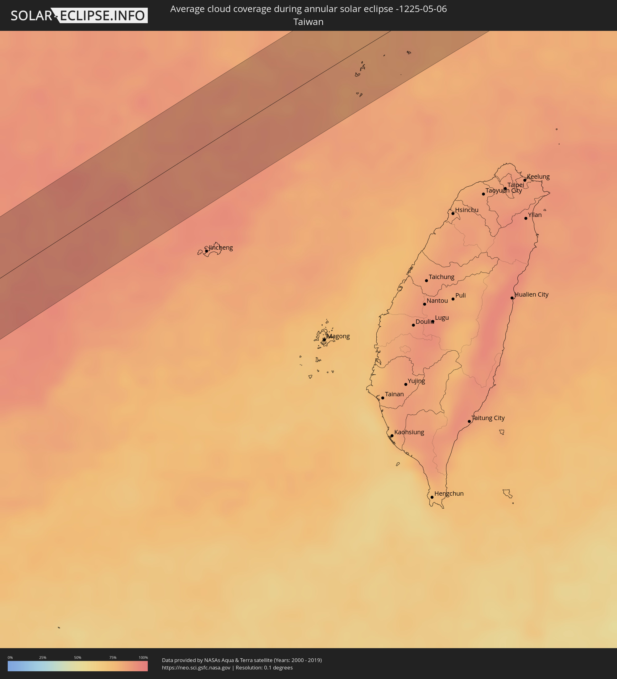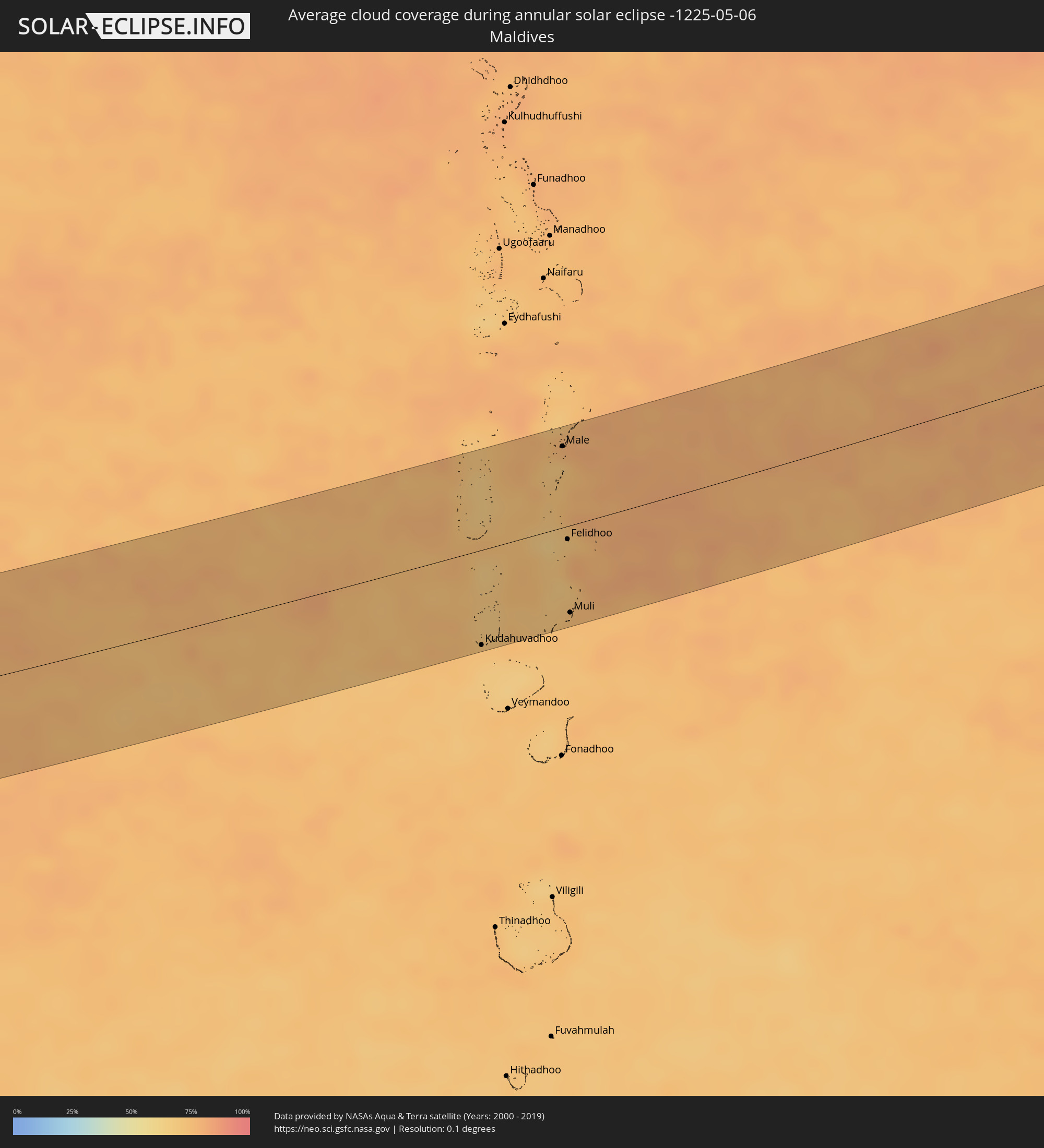 Die folgenden Karten zeigen die durchschnittliche Bewölkung für den Tag, an dem die ringförmige Sonnenfinsternis