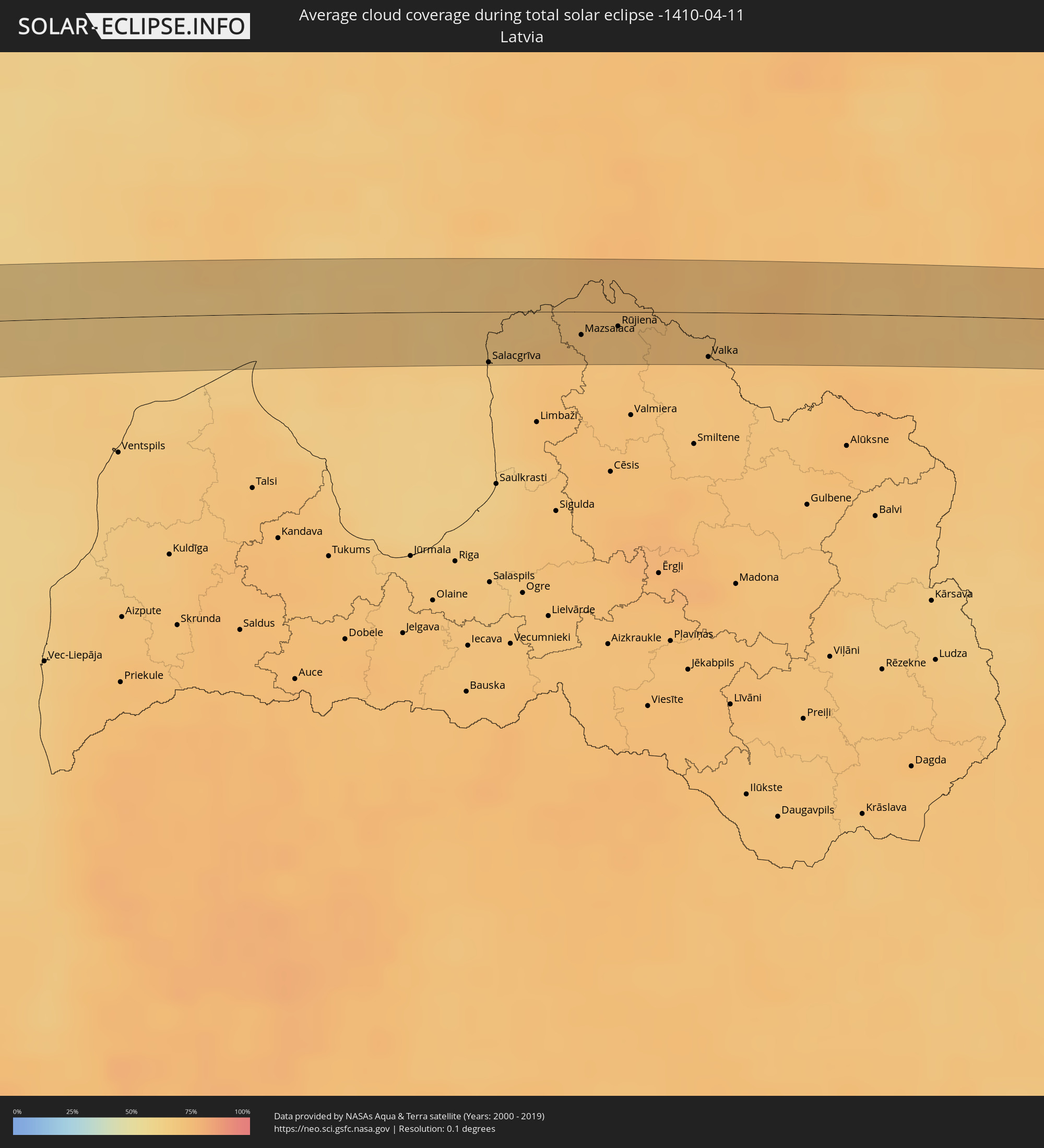 Die Sonnenfinsternis am 11.04.-1410 kann man in 107 Ländern als partielle Sonnenfinsternis beobachten.