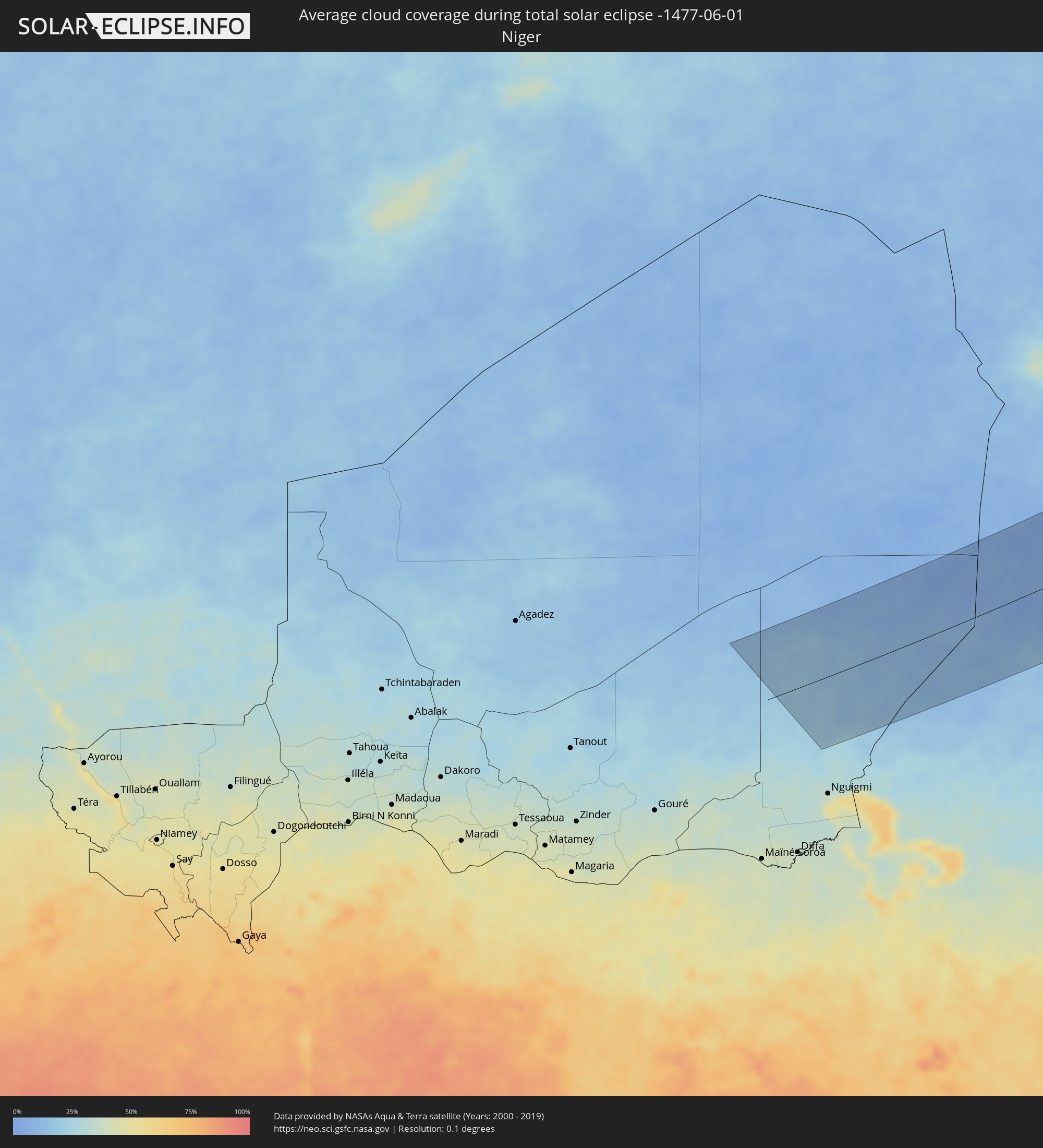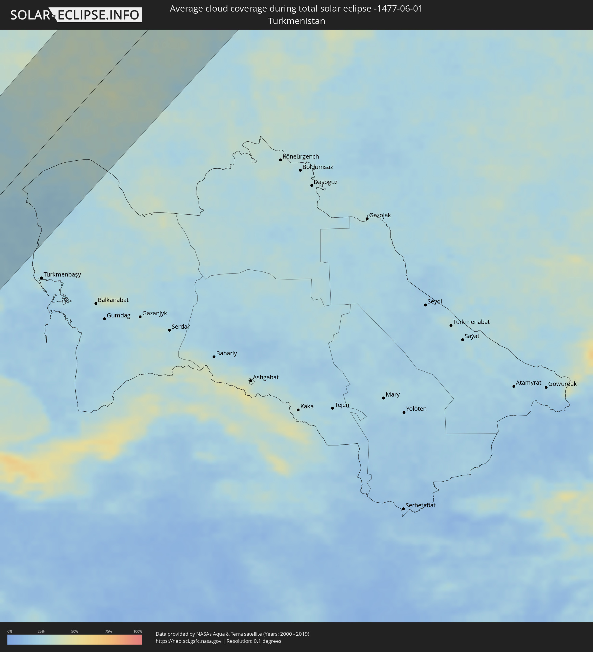 Die Sonnenfinsternis am 01.06.-1477 kann man in 113 Ländern als partielle Sonnenfinsternis beobachten.