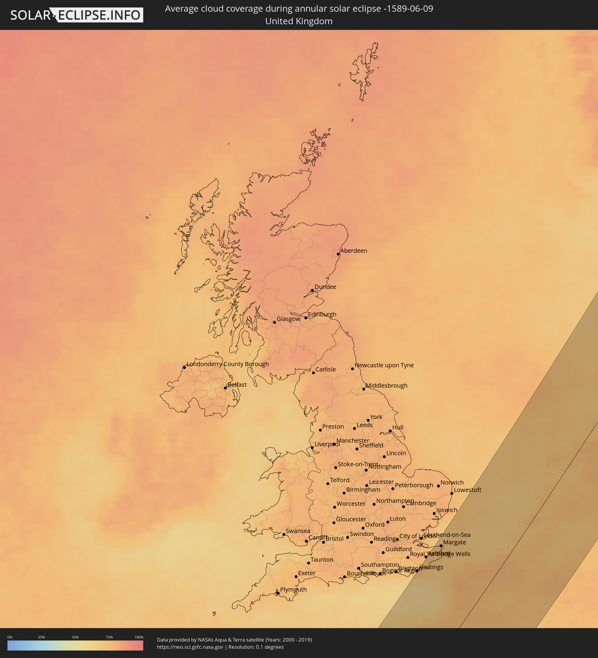 Die Sonnenfinsternis am 09.06.-1589 kann man in 105 Ländern als partielle Sonnenfinsternis beobachten.