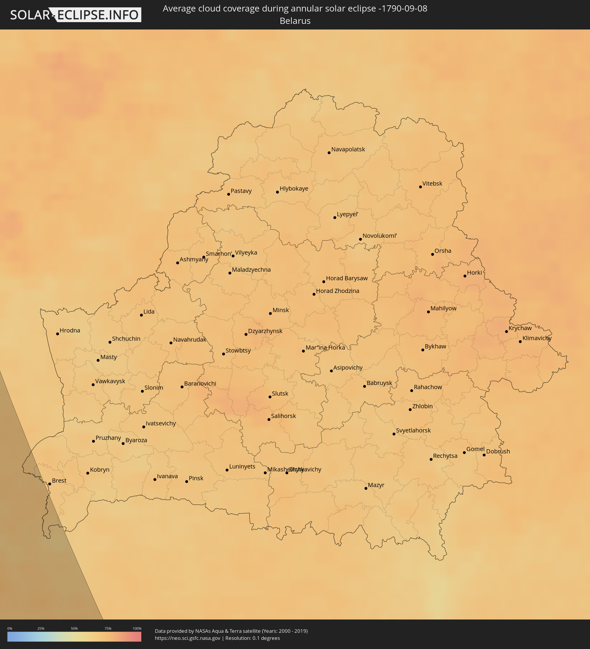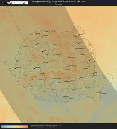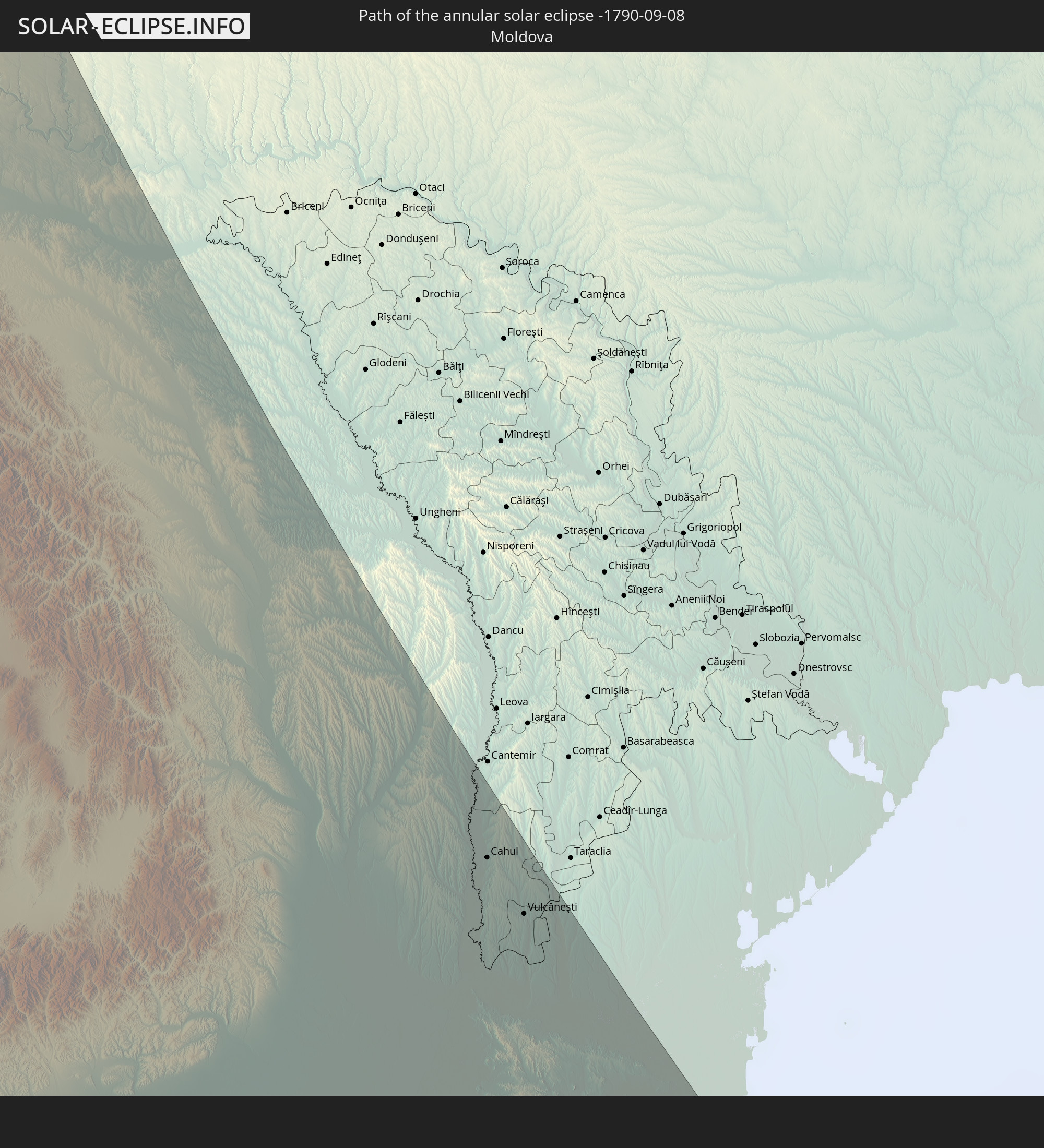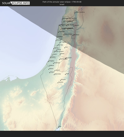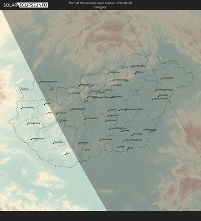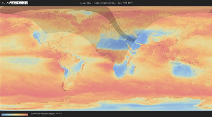Die Sonnenfinsternis am 08.09.-1790 kann man in 106 Ländern als partielle Sonnenfinsternis beobachten.