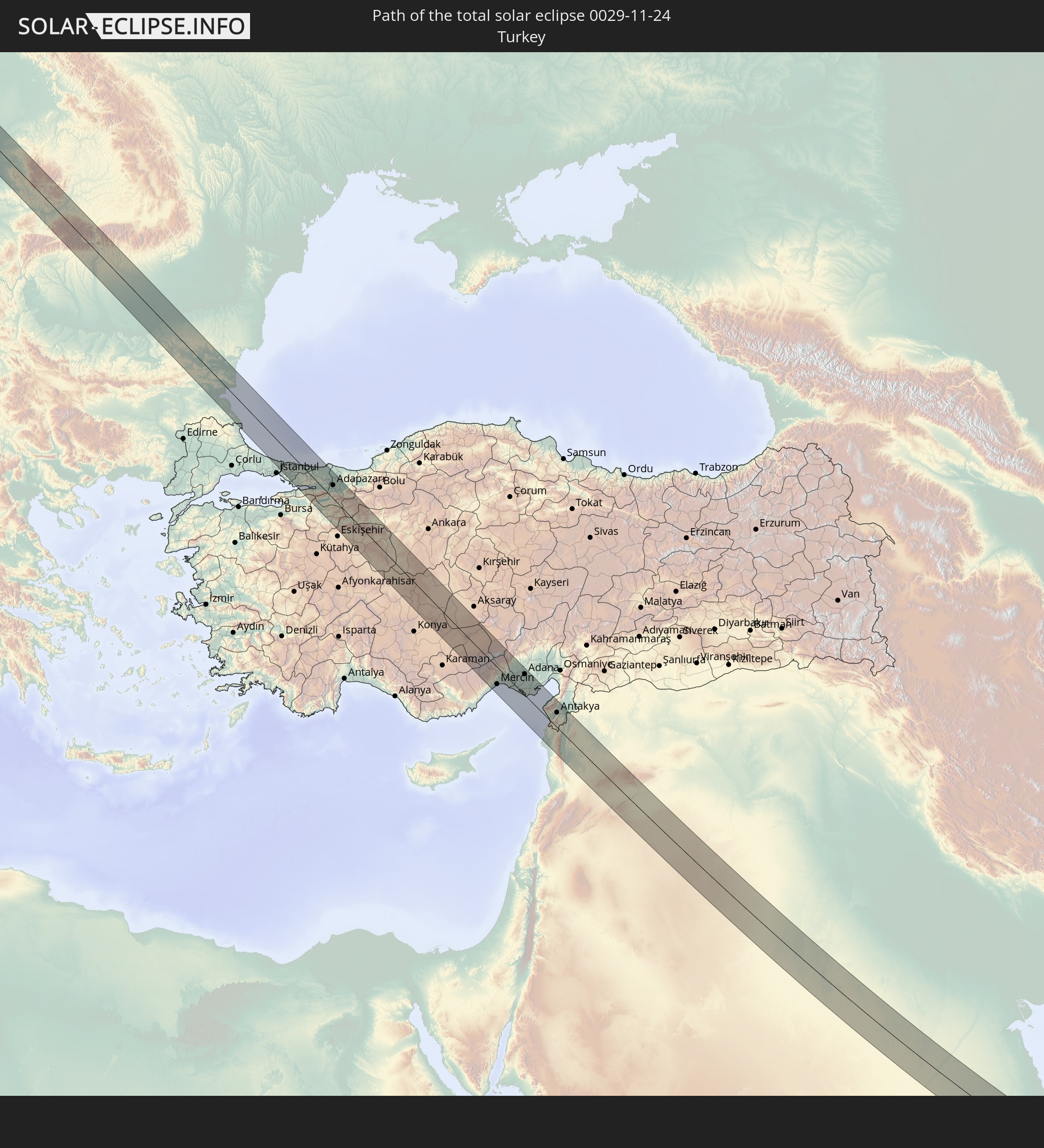 Wo kann man die Sonnenfinsternis vom 24.11.0029 sehen?