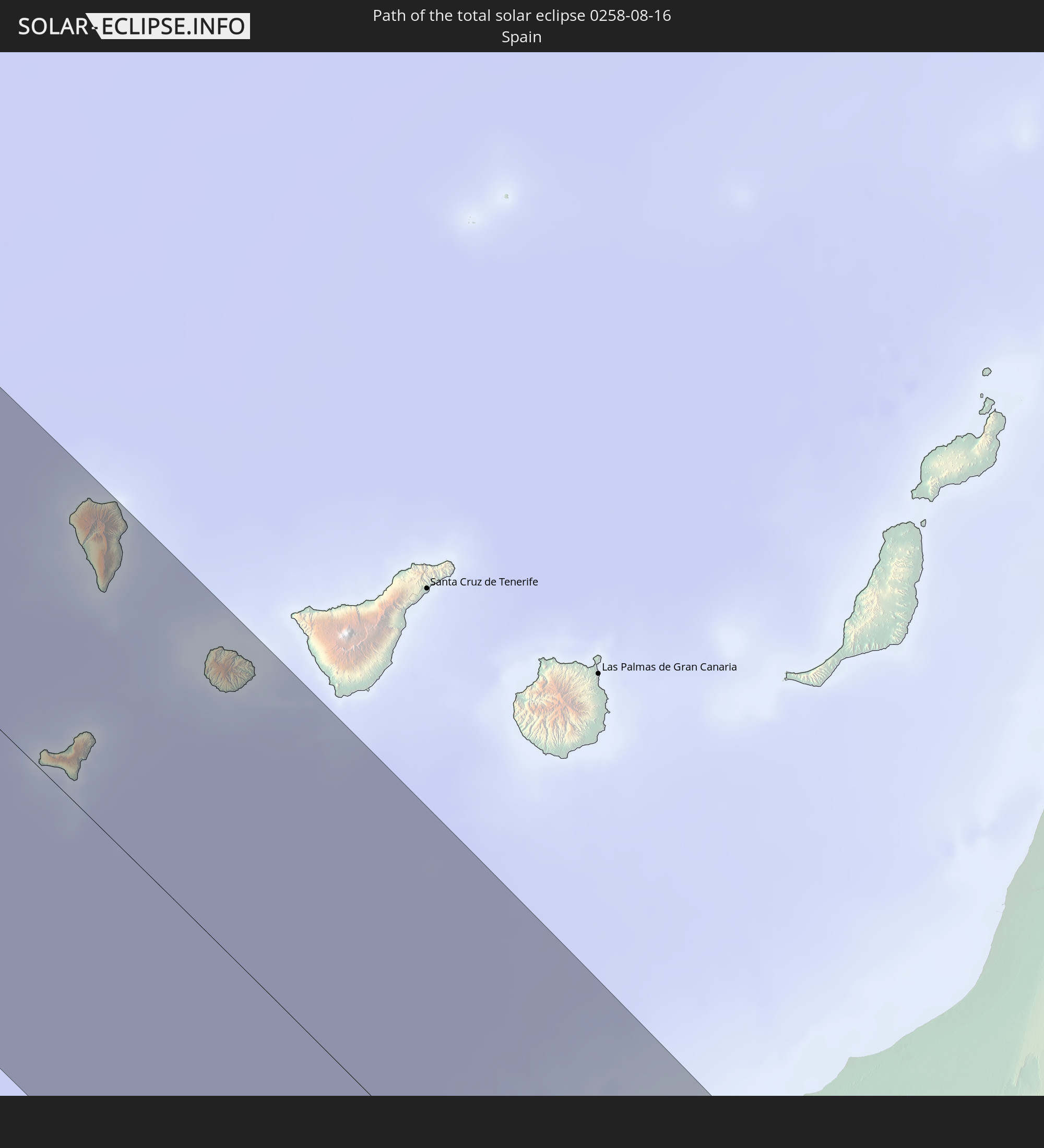 Wo kann man die Sonnenfinsternis vom 16.08.0258 sehen?