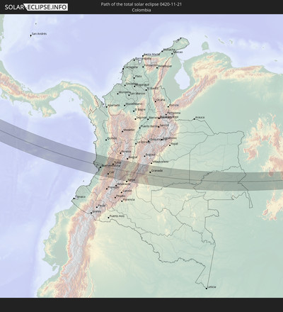 Die Sonnenfinsternis am 21.11.0420 kann man in 51 Ländern als partielle Sonnenfinsternis beobachten.