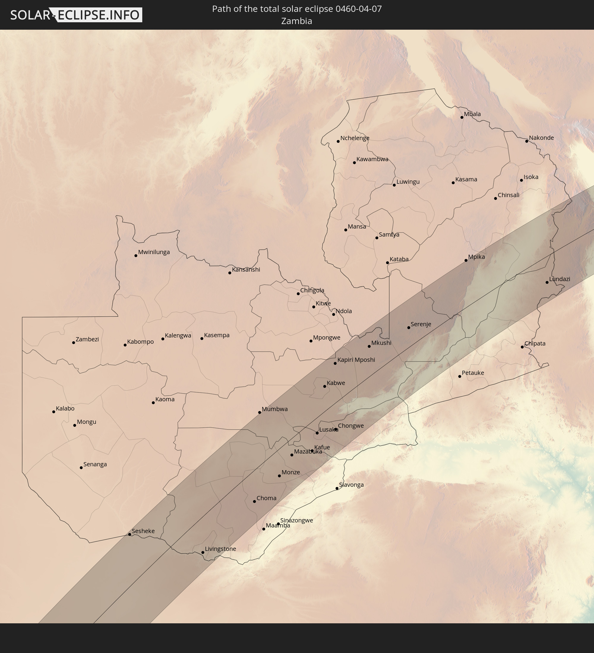 Wo ist der beste Ort, um die totale Sonnenfinsternis vom 07.04.0460 zu beobachten?