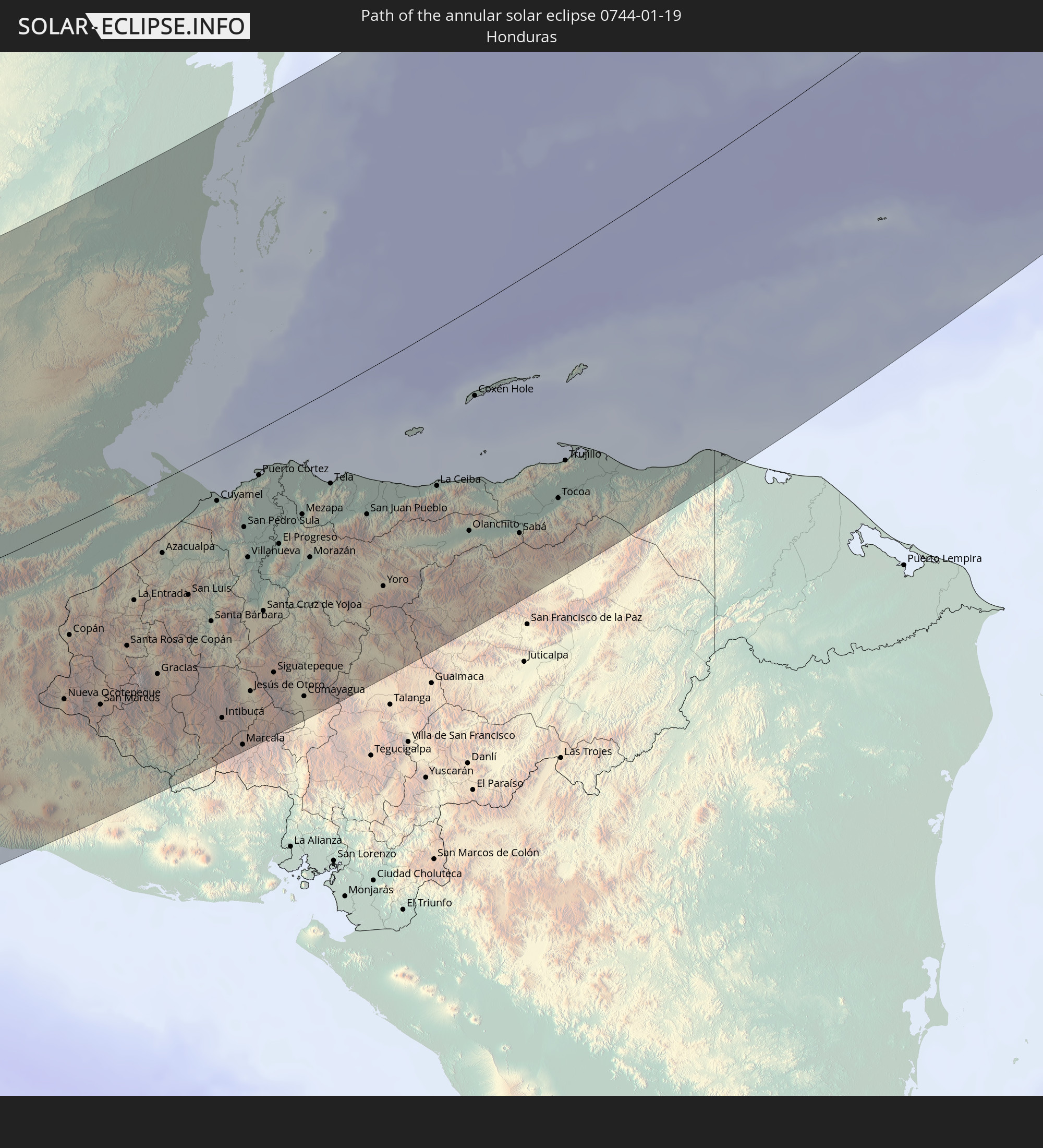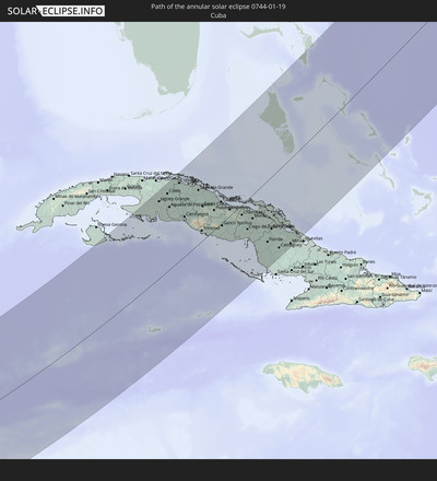 Wo ist der beste Ort, um die ringförmige Sonnenfinsternis vom 19.01.0744 zu beobachten?