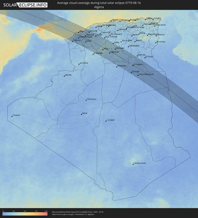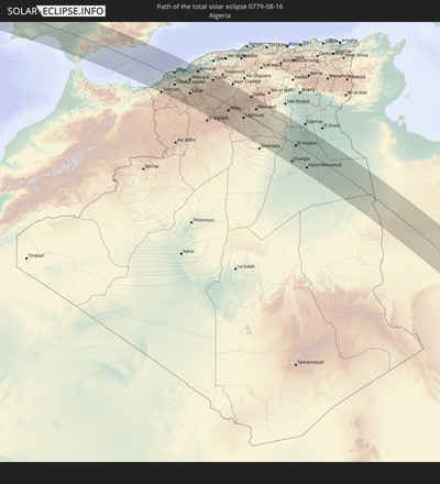 Die Sonnenfinsternis am 16.08.0779 kann man in 140 Ländern als partielle Sonnenfinsternis beobachten.