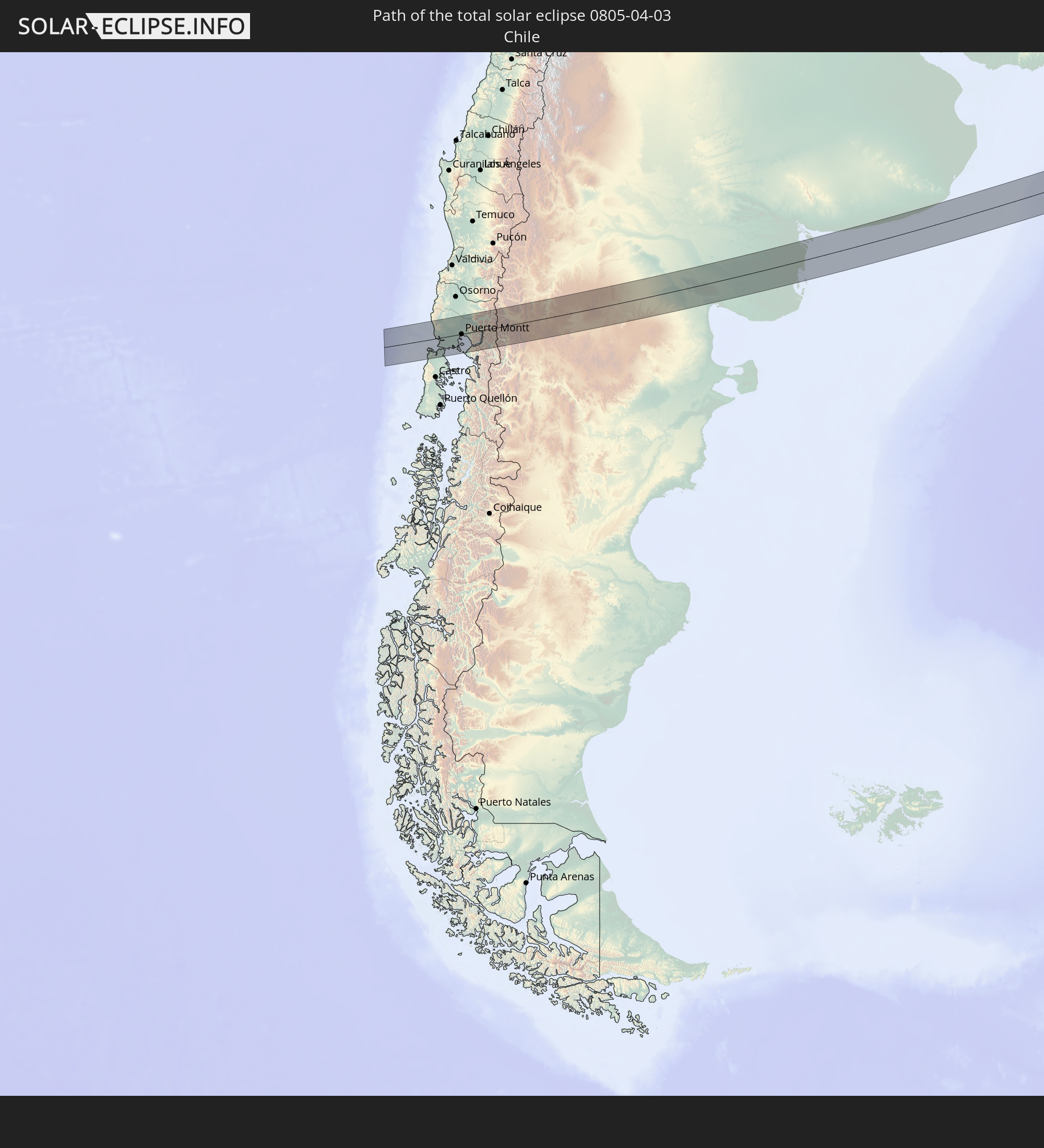 Wo kann man die Sonnenfinsternis vom 03.04.0805 sehen?