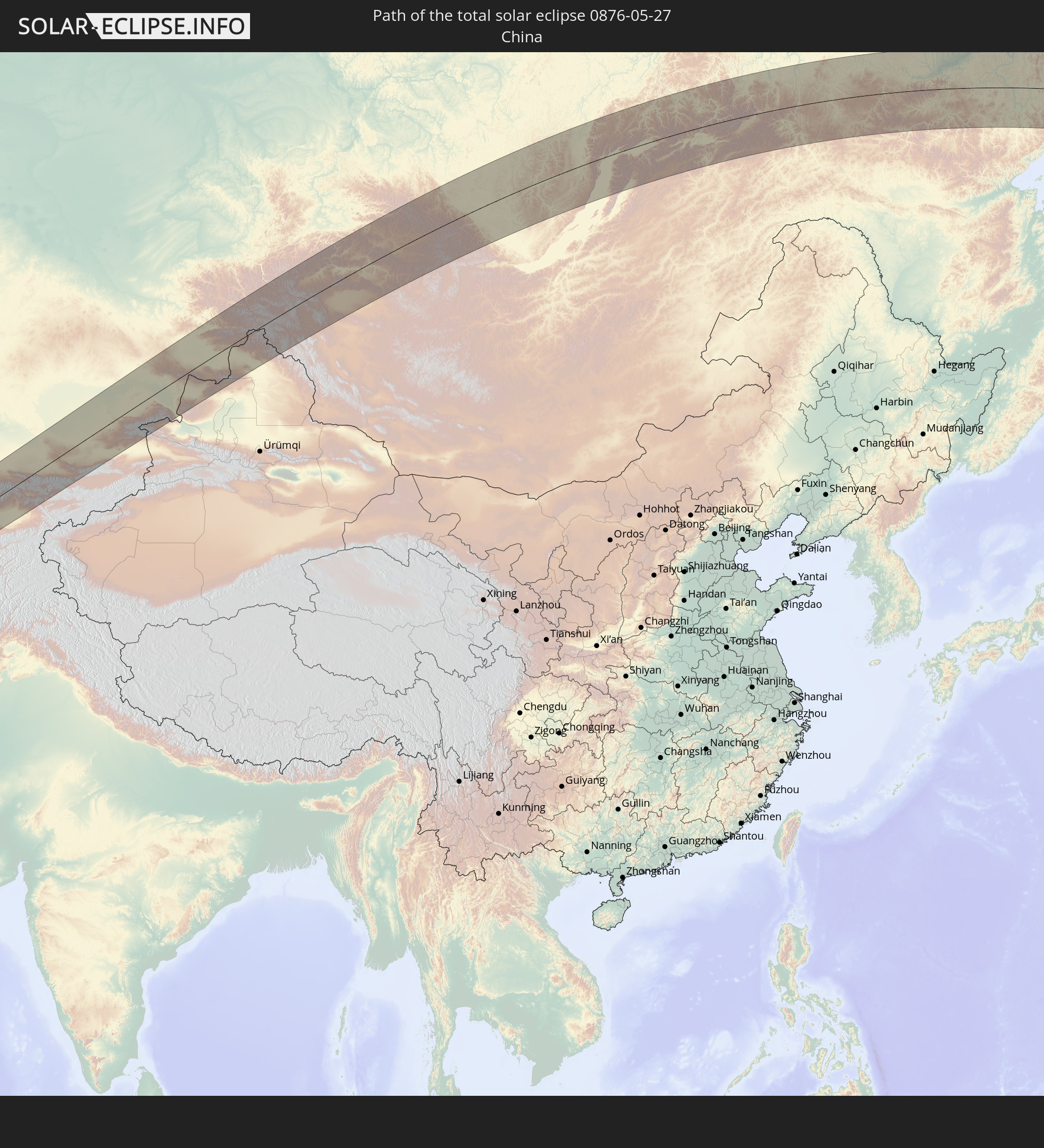 Wo kann man die Sonnenfinsternis vom 27.05.0876 sehen?