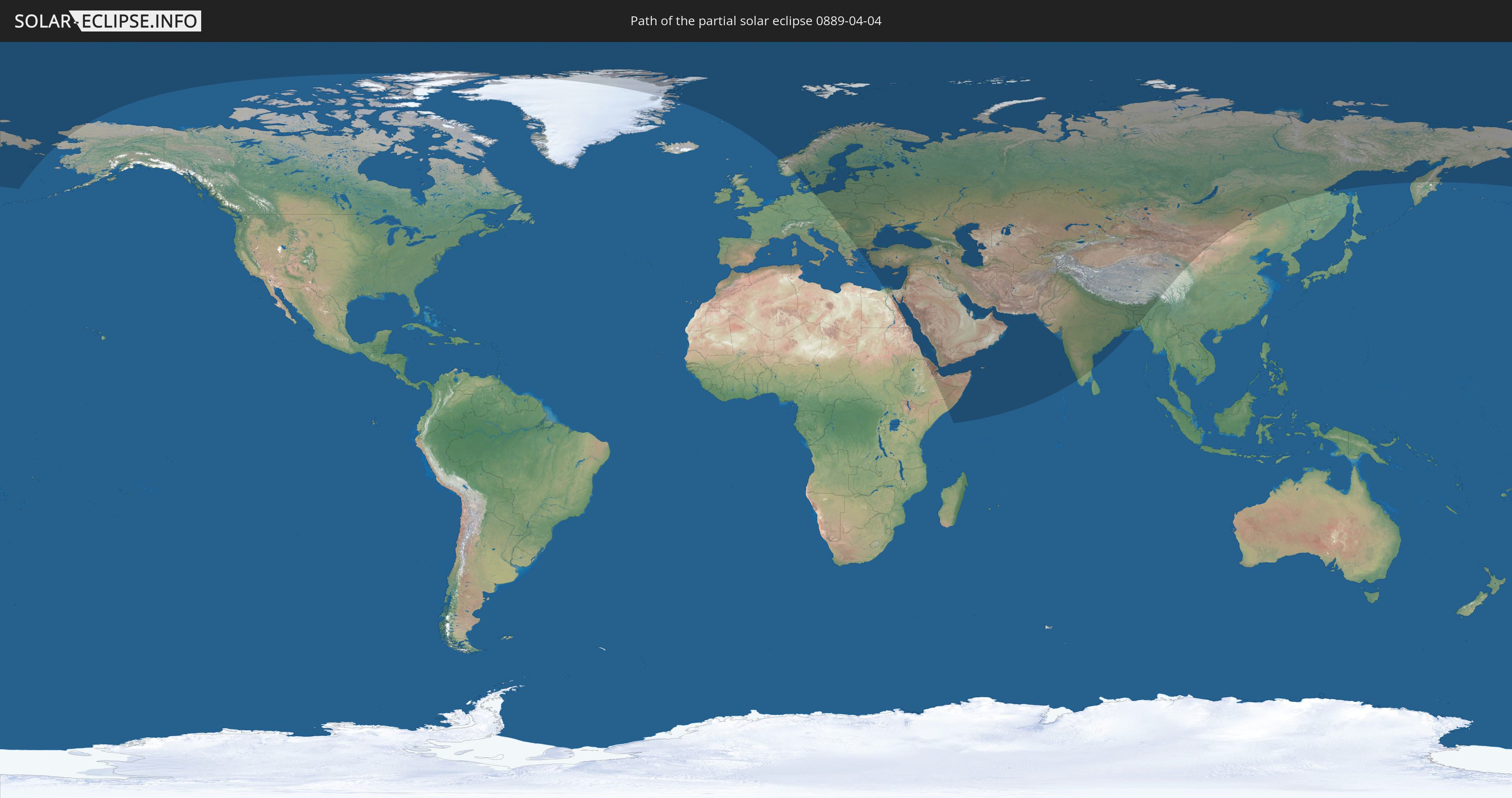 Die Sonnenfinsternis am 04.04.0889 kann man in 63 Ländern als partielle Sonnenfinsternis beobachten.