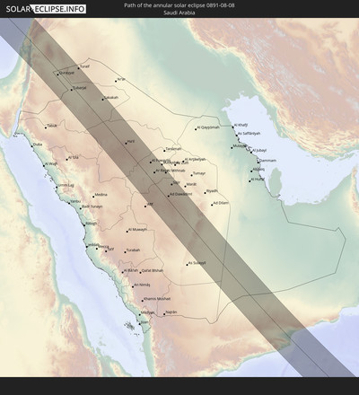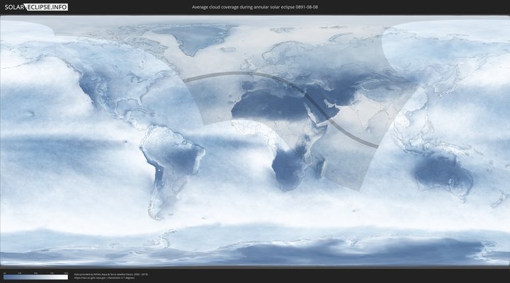 Die Sonnenfinsternis am 08.08.0891 kann man in 129 Ländern als partielle Sonnenfinsternis beobachten.