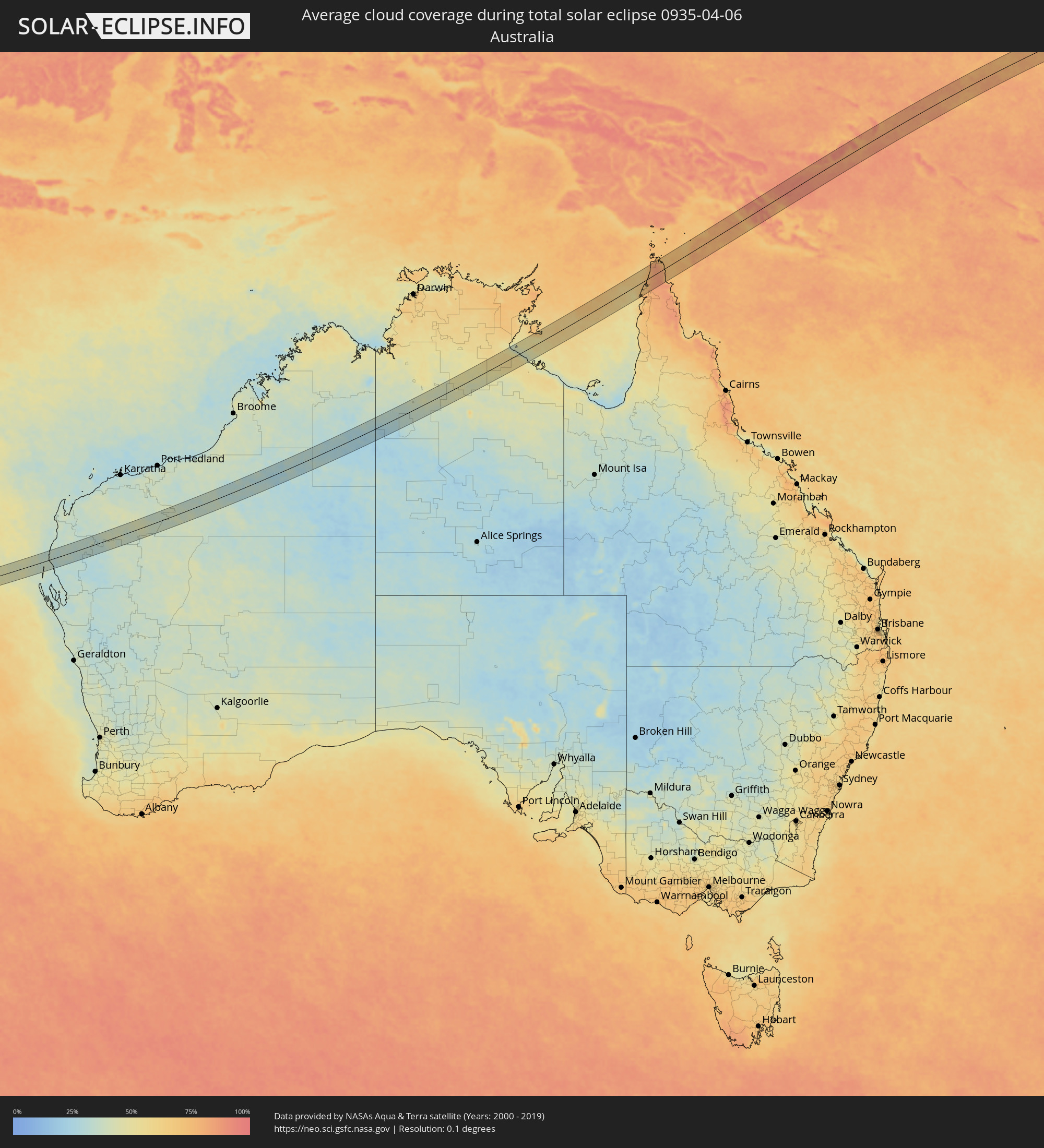 Wo ist der beste Ort, um die totale Sonnenfinsternis vom 06.04.0935 zu beobachten?