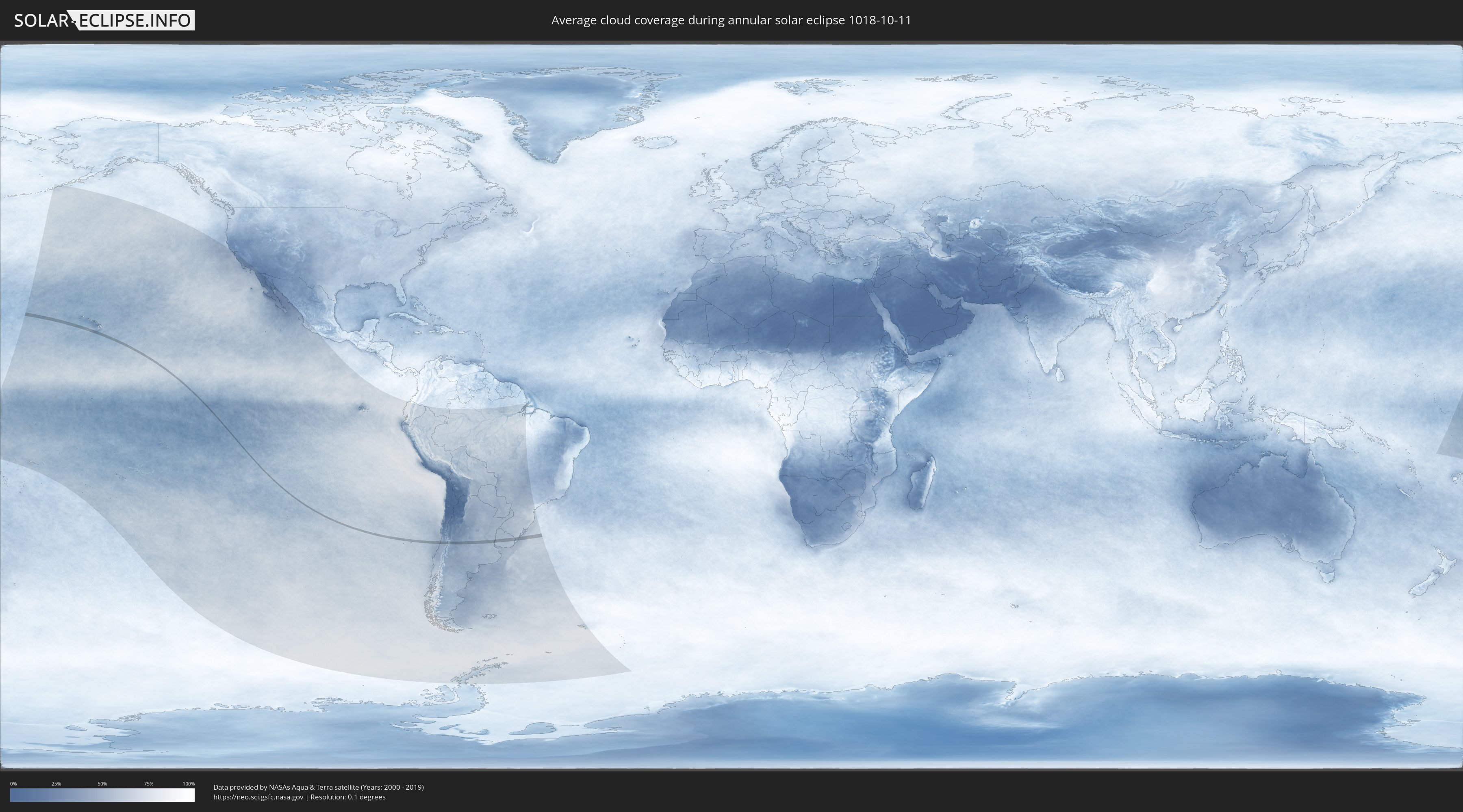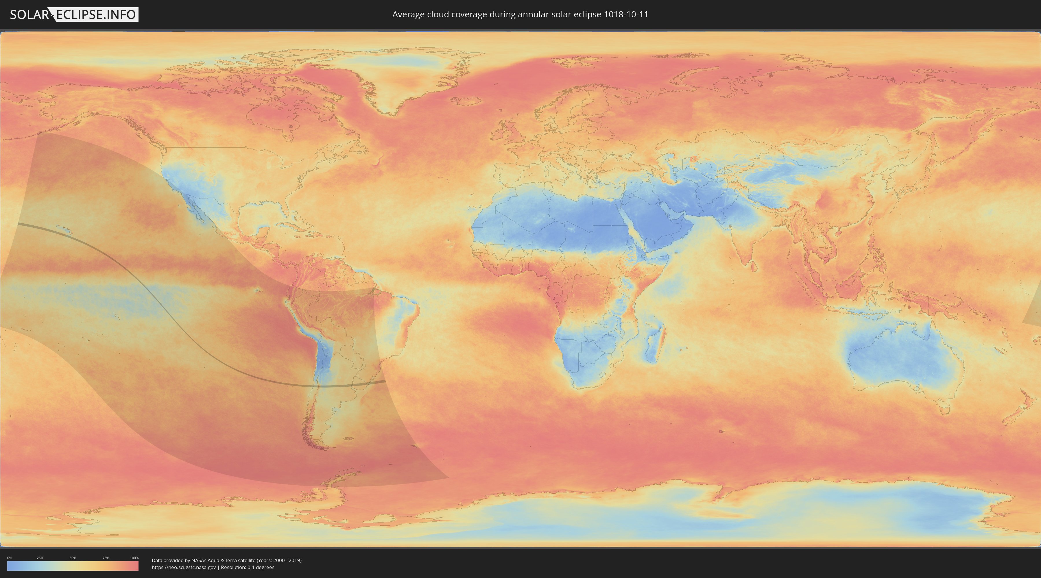 Die folgenden Karten zeigen die durchschnittliche Bewölkung für den Tag, an dem die ringförmige Sonnenfinsternis