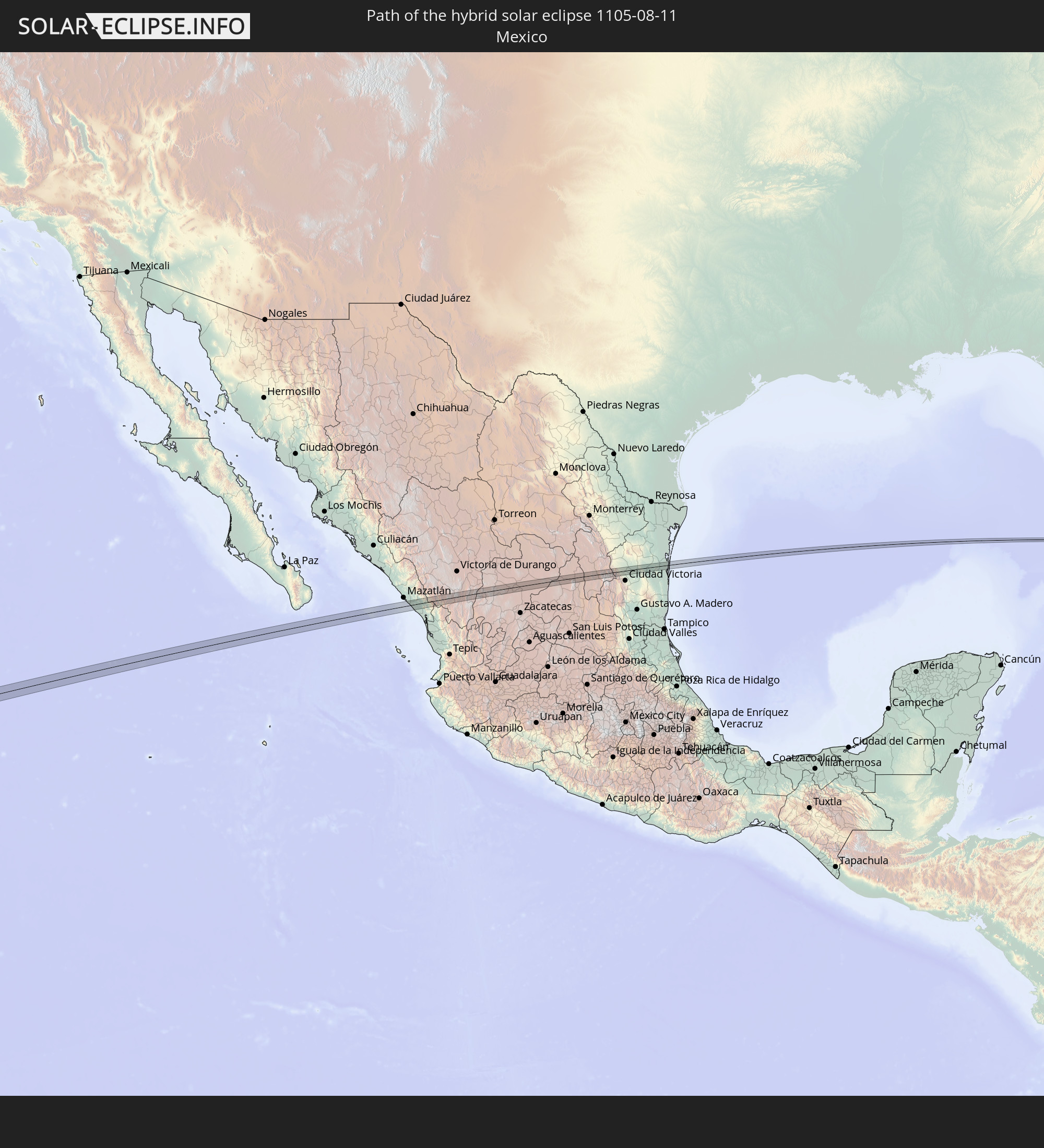 Wo ist der beste Ort, um die hybride Sonnenfinsternis vom 11.08.1105 zu beobachten?
