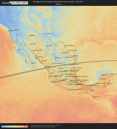 Wie wird das Wetter während der hybriden Sonnenfinsternis am 11.08.1105?