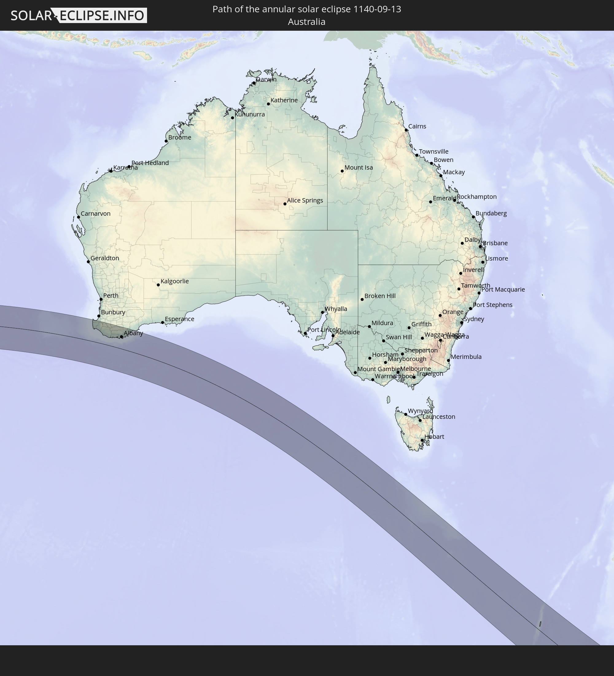 Wo ist der beste Ort, um die ringförmige Sonnenfinsternis vom 13.09.1140 zu beobachten?