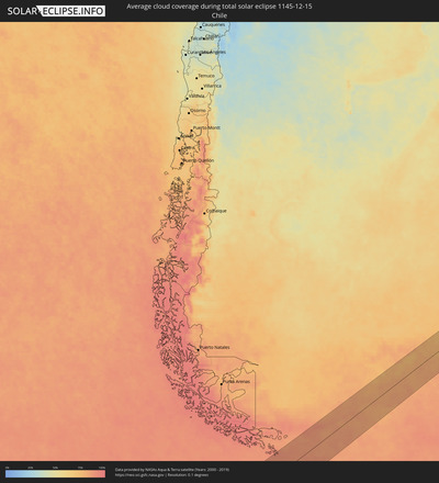 Die folgenden Karten zeigen die durchschnittliche Bewölkung für den Tag, an dem die totale Sonnenfinsternis