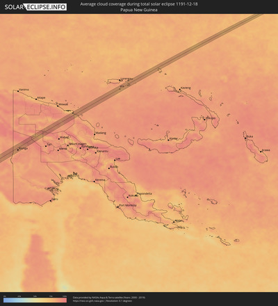 Die Sonnenfinsternis am 18.12.1191 kann man in 53 Ländern als partielle Sonnenfinsternis beobachten.