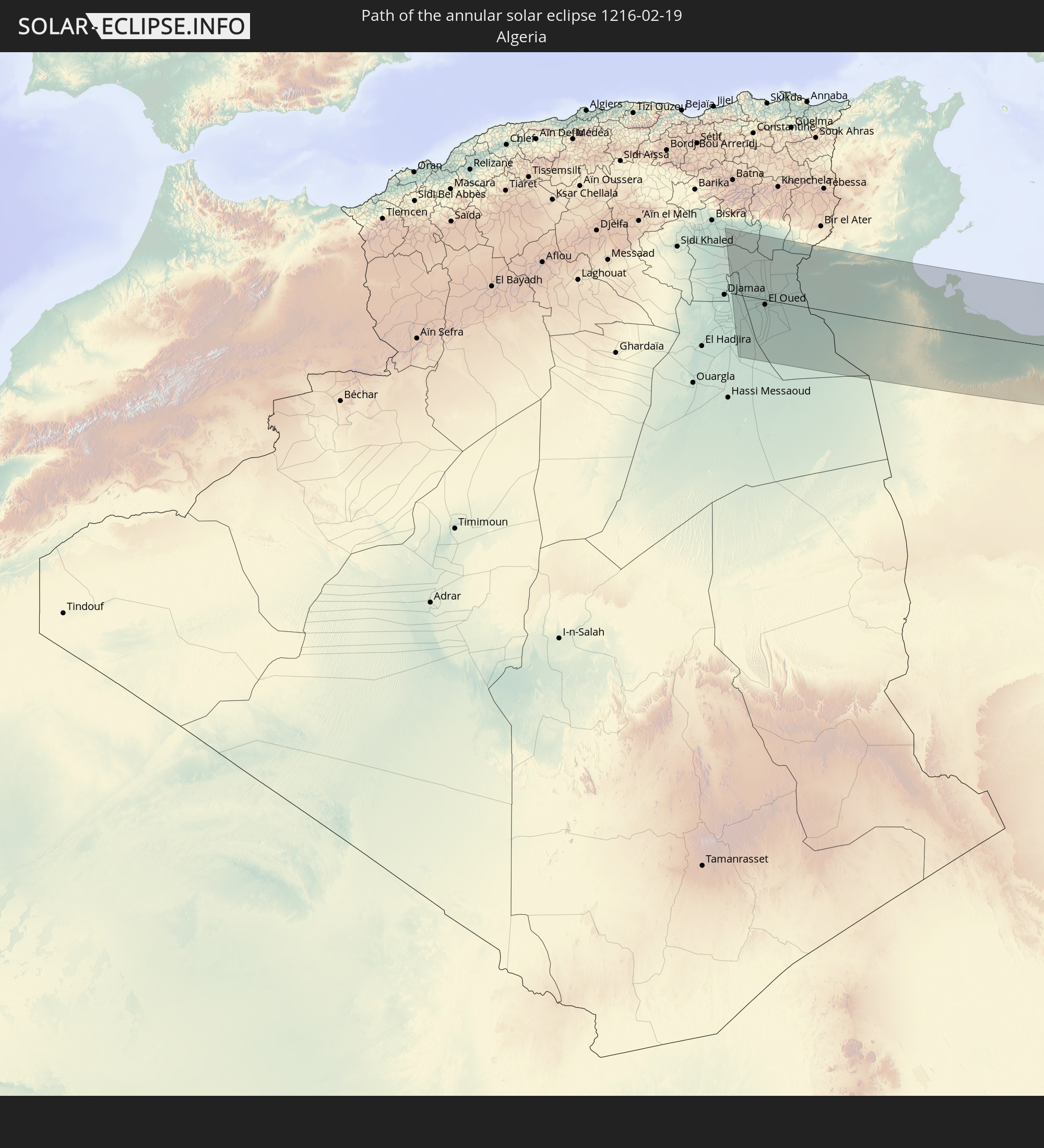 Wo kann man die Sonnenfinsternis vom 19.02.1216 sehen?
