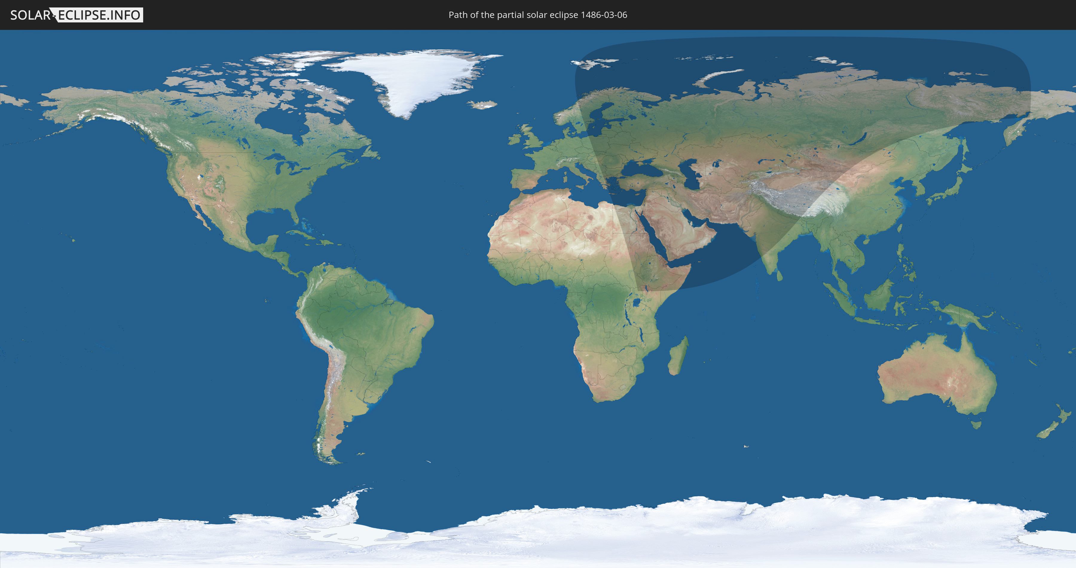 Die Sonnenfinsternis am 06.03.1486 kann man in 59 Ländern als partielle Sonnenfinsternis beobachten.