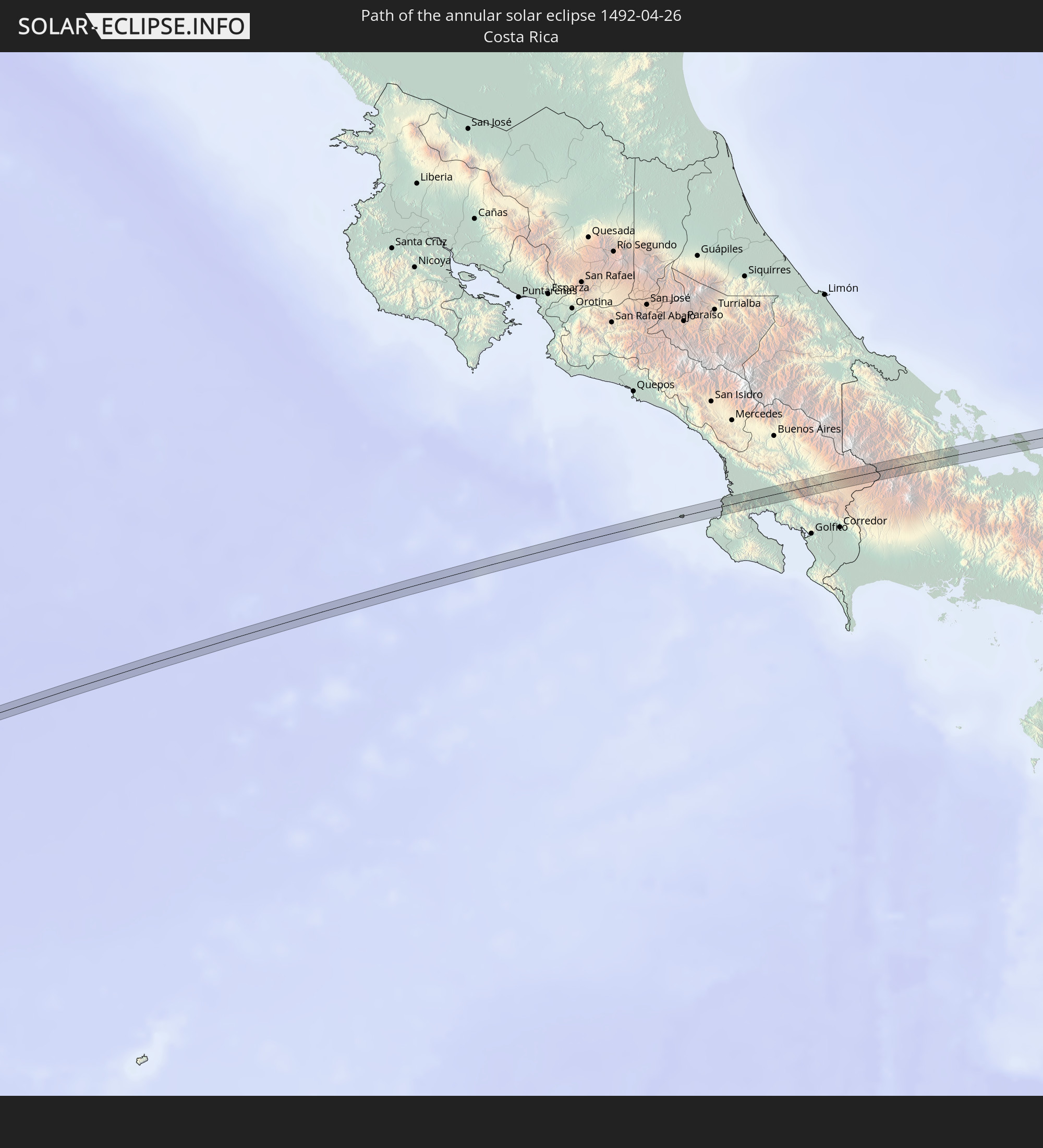 Wo ist der beste Ort, um die ringförmige Sonnenfinsternis vom 26.04.1492 zu beobachten?