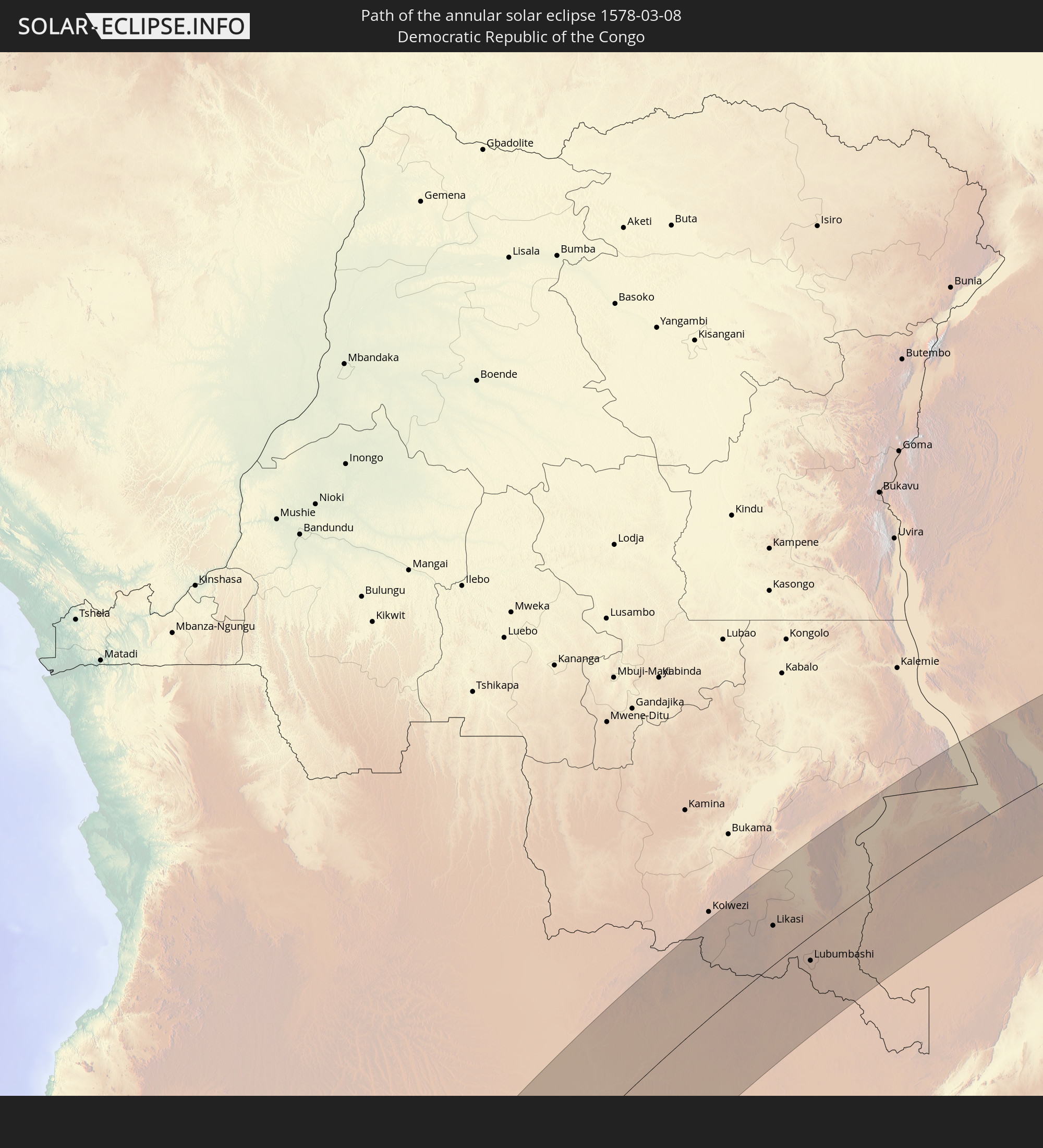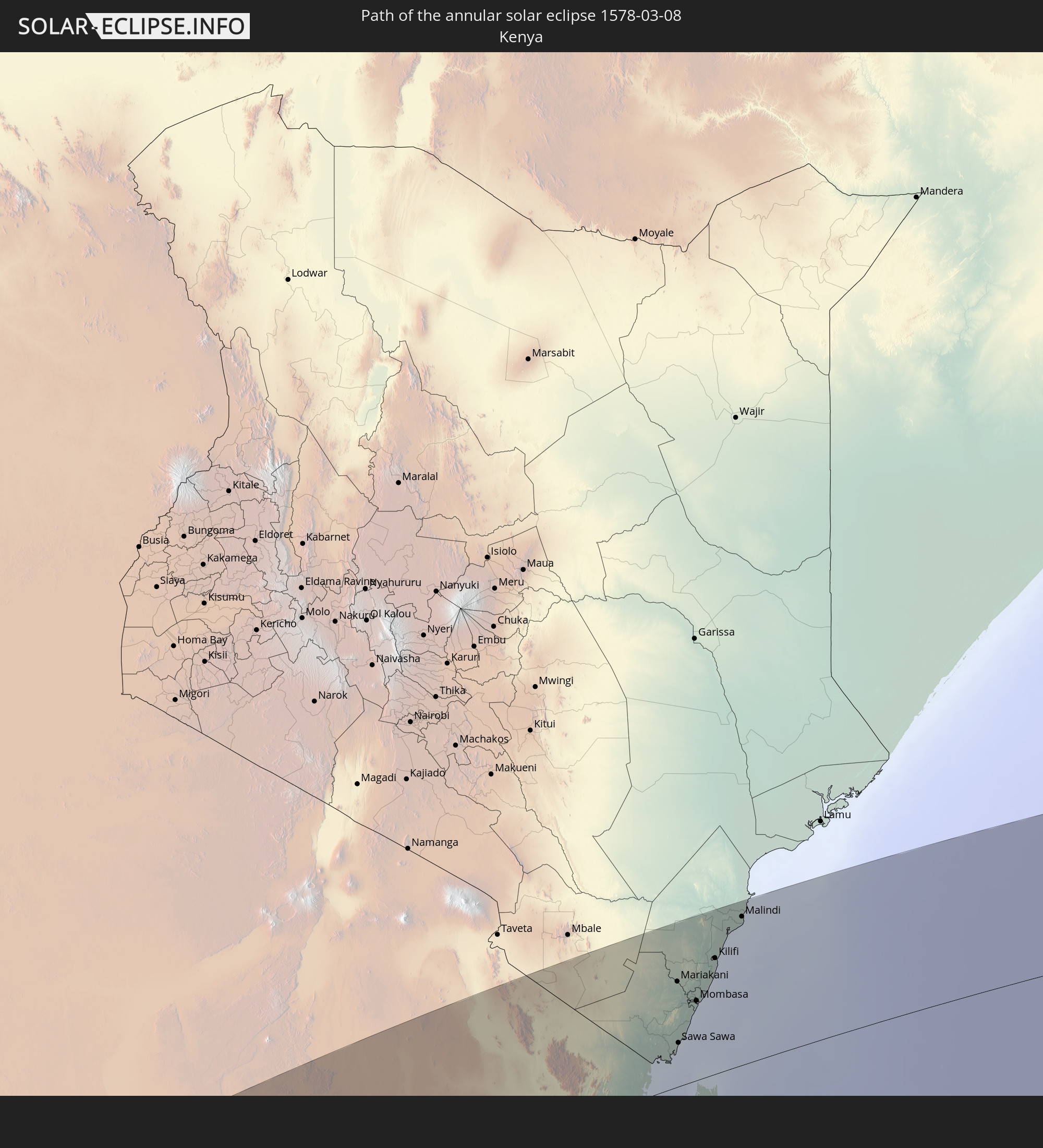 Wo ist der beste Ort, um die ringförmige Sonnenfinsternis vom 08.03.1578 zu beobachten?