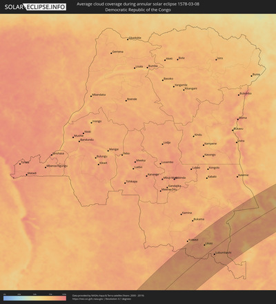 Die Sonnenfinsternis am 08.03.1578 kann man in 67 Ländern als partielle Sonnenfinsternis beobachten.
