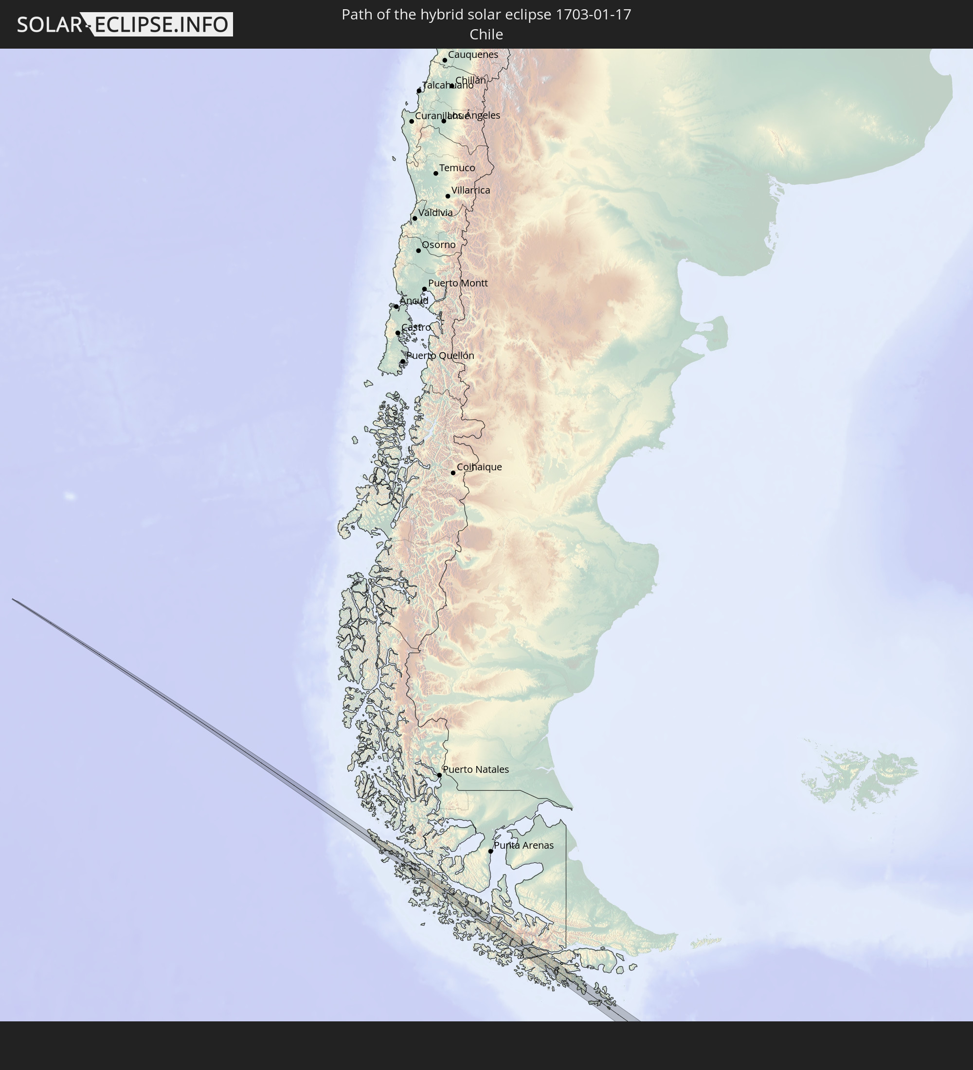 Wo ist der beste Ort, um die hybride Sonnenfinsternis vom 17.01.1703 zu beobachten?