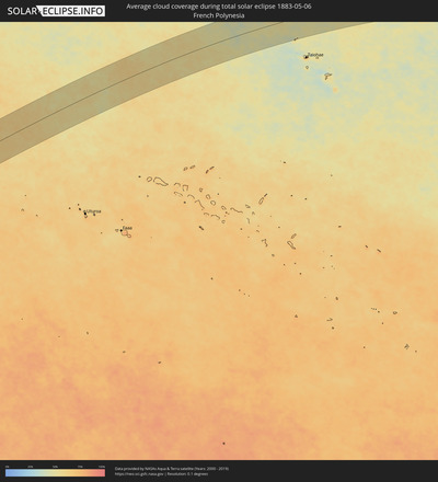 Die folgenden Karten zeigen die durchschnittliche Bewölkung für den Tag, an dem die totale Sonnenfinsternis