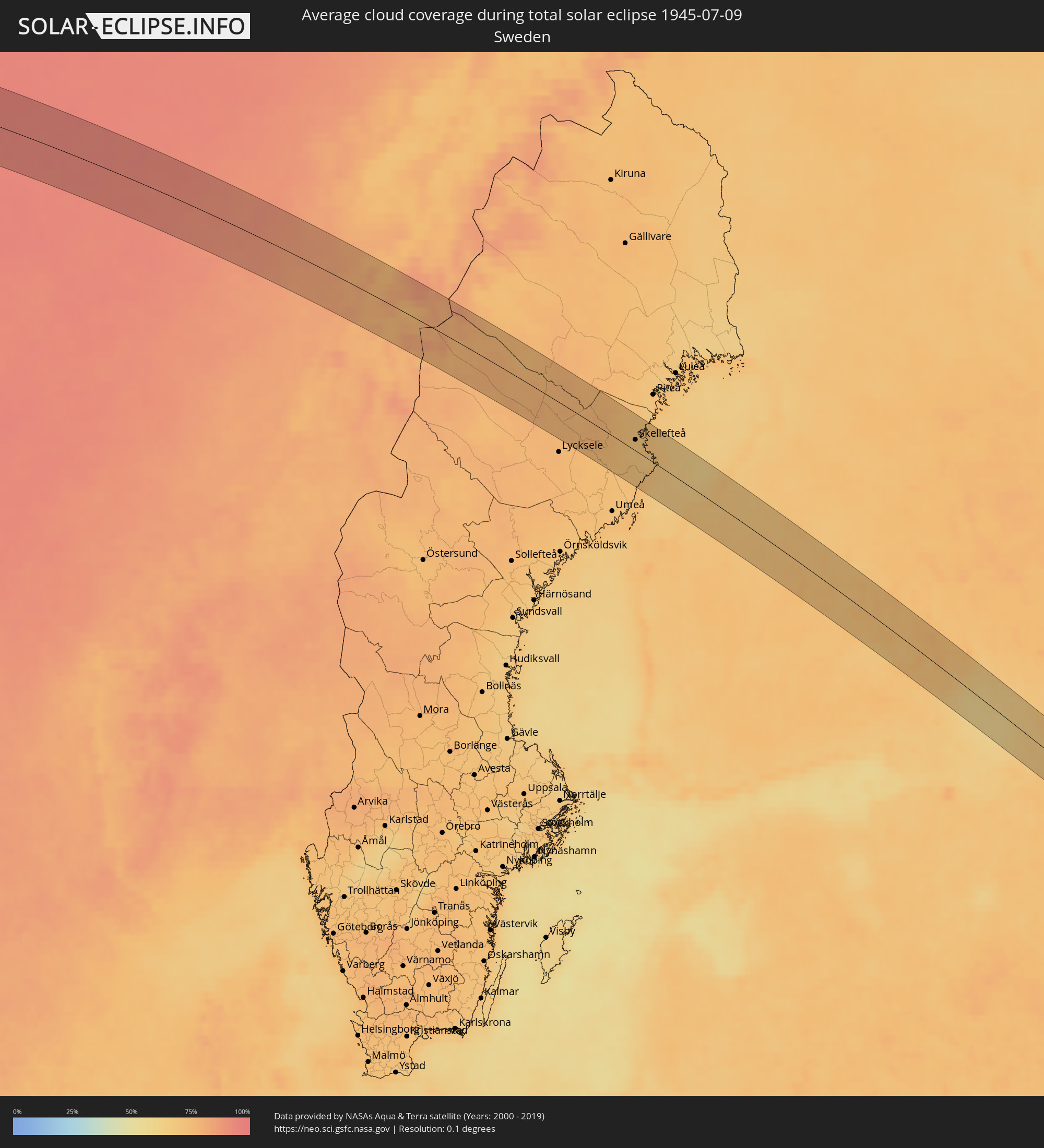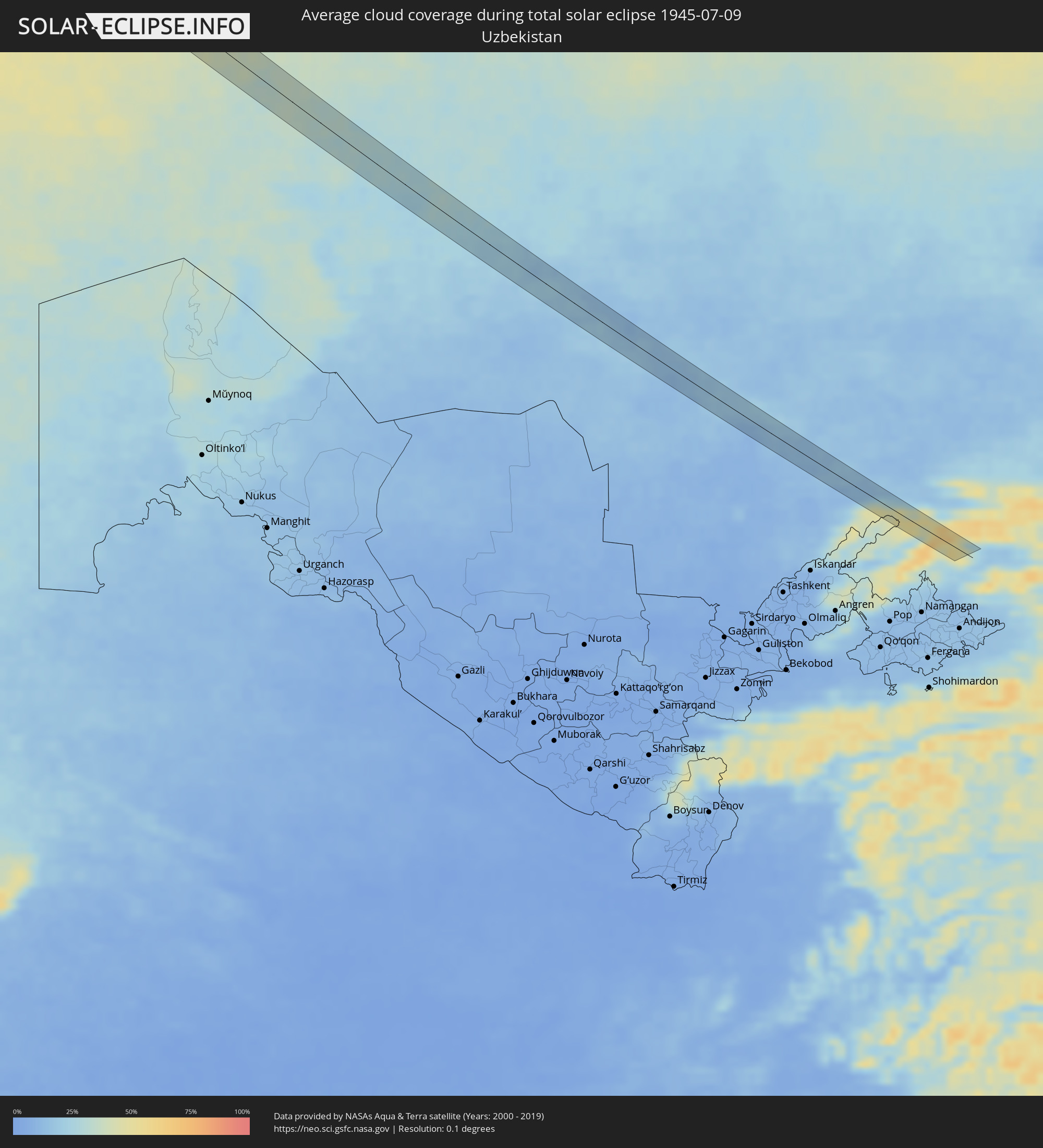 Wo kann man die Sonnenfinsternis vom 09.07.1945 sehen?