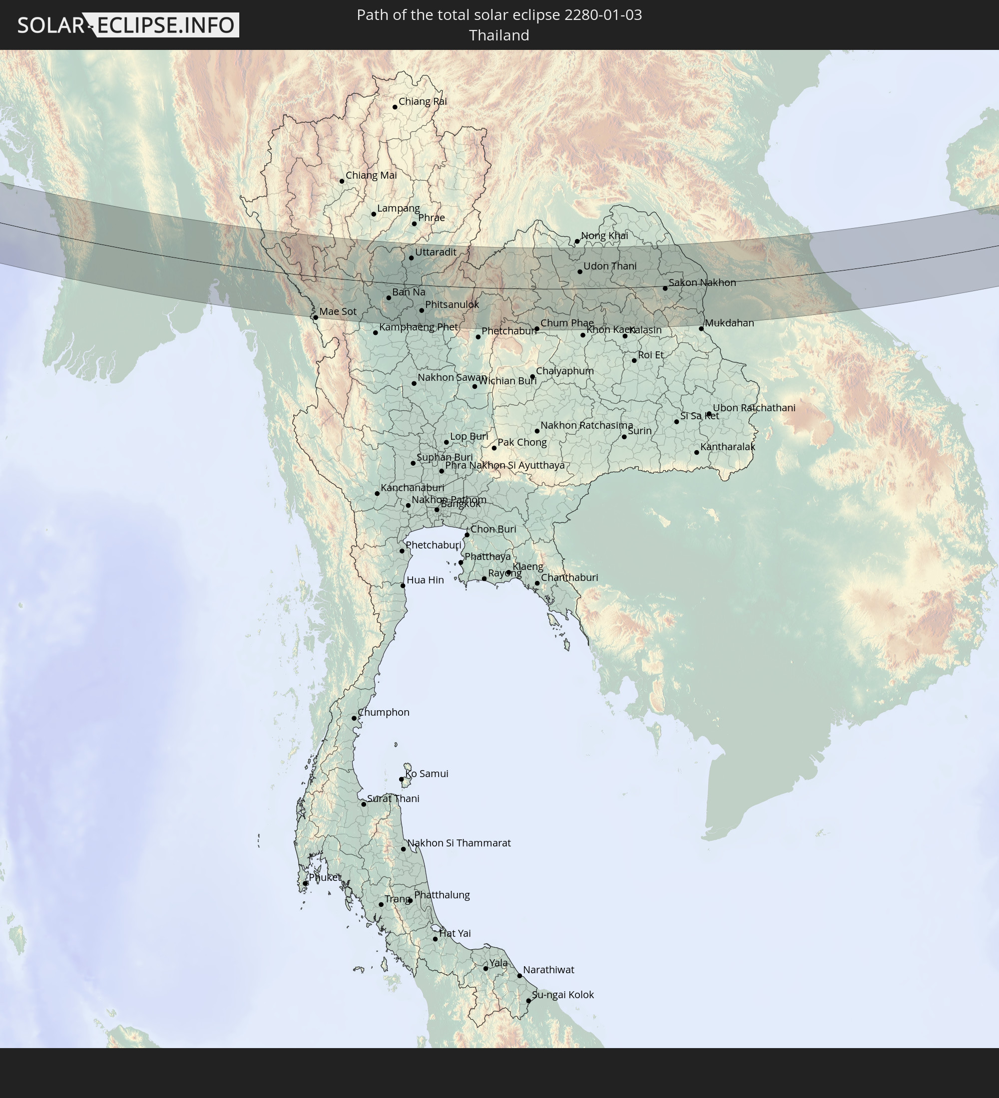 Wo ist der beste Ort, um die totale Sonnenfinsternis vom 03.01.2280 zu beobachten?