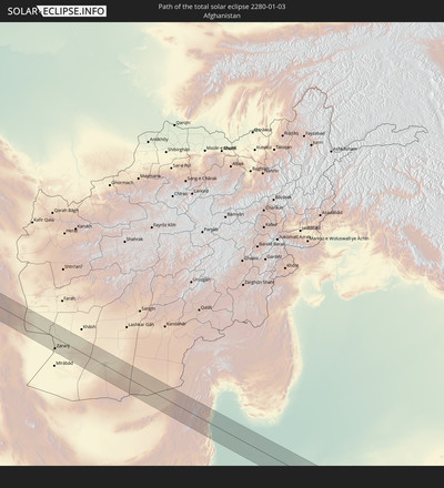 Die Sonnenfinsternis am 03.01.2280 kann man in 56 Ländern als partielle Sonnenfinsternis beobachten.