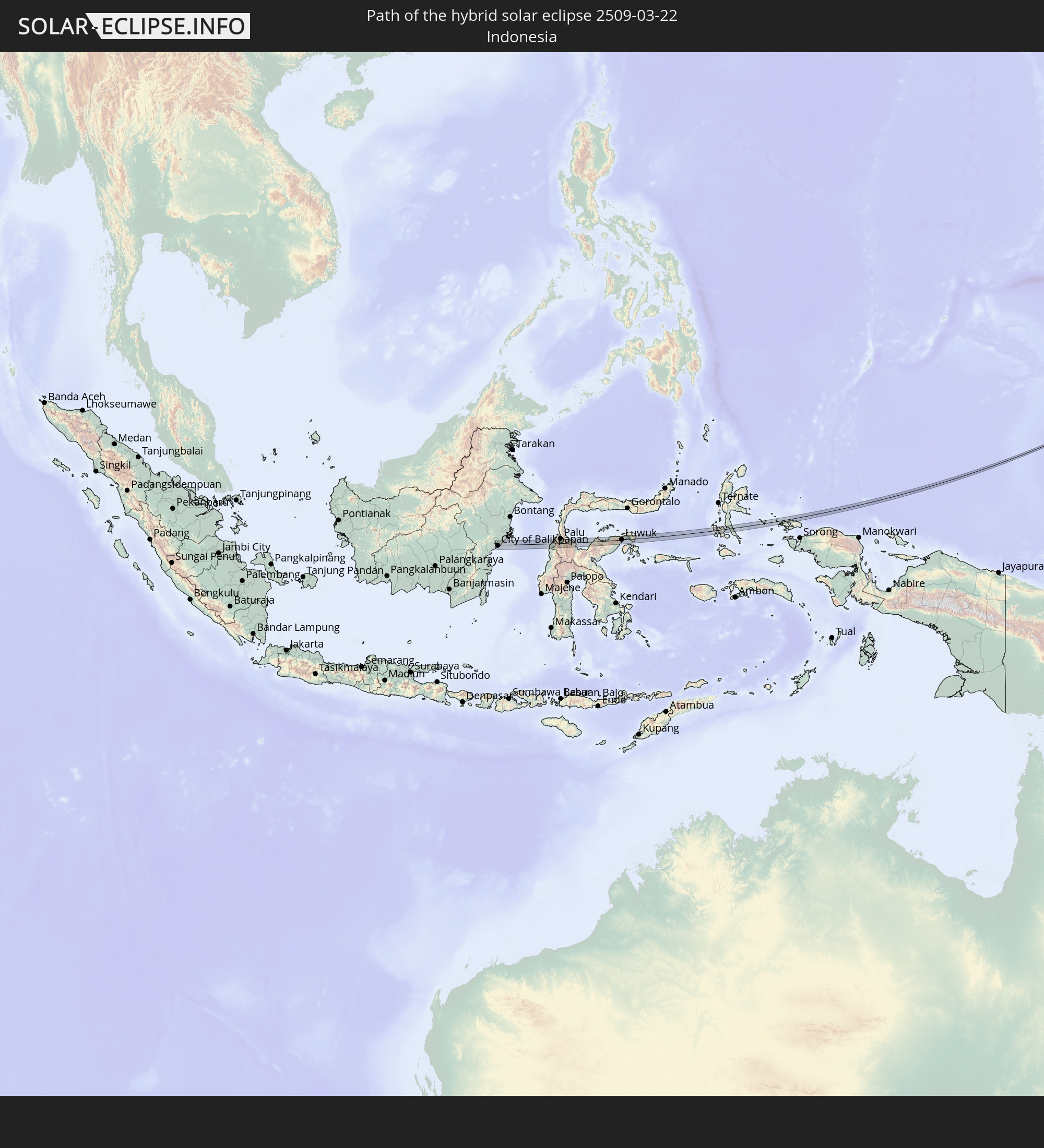 Wo ist der beste Ort, um die hybride Sonnenfinsternis vom 22.03.2509 zu beobachten?