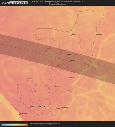 Die folgenden Karten zeigen die durchschnittliche Bewölkung für den Tag, an dem die ringförmige Sonnenfinsternis