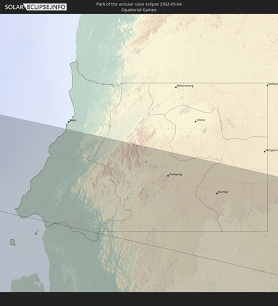 Der Finsternispfad verläuft durch 9 Länder. Nur in diesen Ländern ist sie als ringförmige Sonnenfinsternis zu sehen.