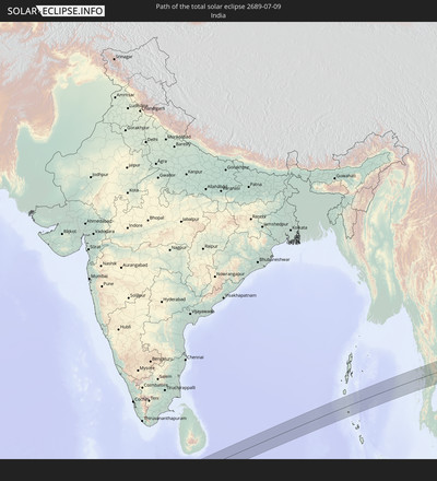 Die Sonnenfinsternis am 09.07.2689 kann man in 56 Ländern als partielle Sonnenfinsternis beobachten.
