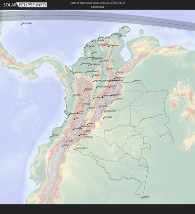 Die Sonnenfinsternis am 29.04.2758 kann man in 52 Ländern als partielle Sonnenfinsternis beobachten.