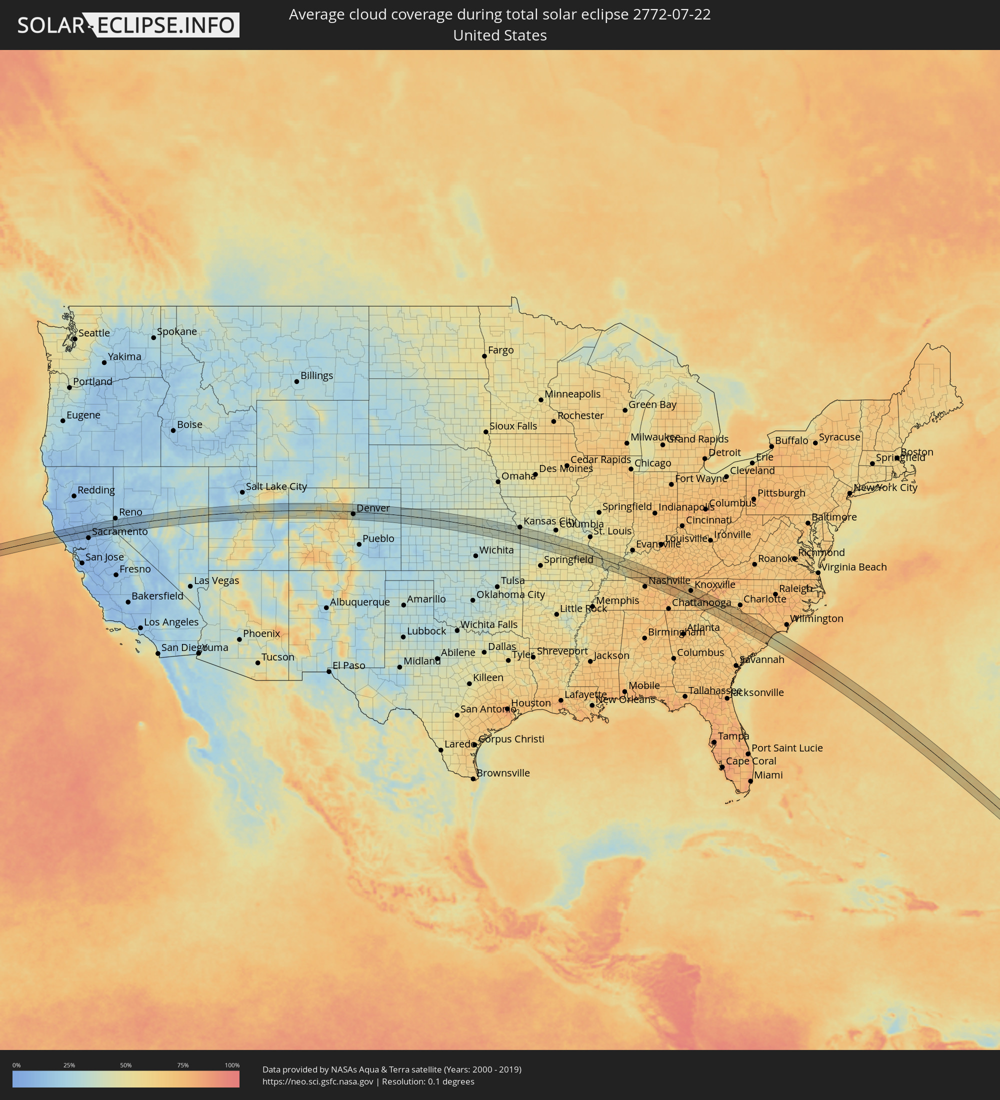 Wie wird das Wetter während der totalen Sonnenfinsternis am 22.07.2772?