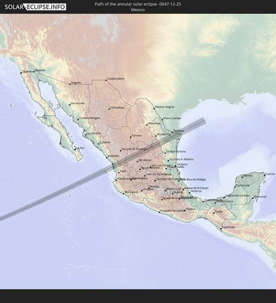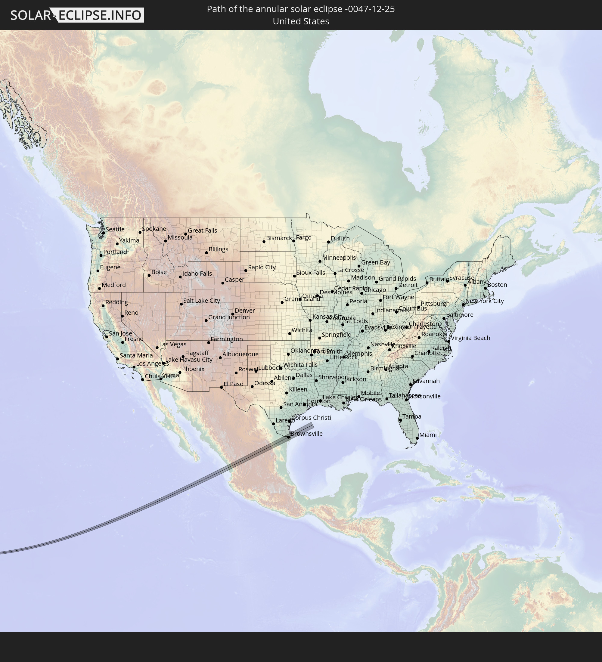 Wo kann man die Sonnenfinsternis vom 12/25/-0047 sehen?