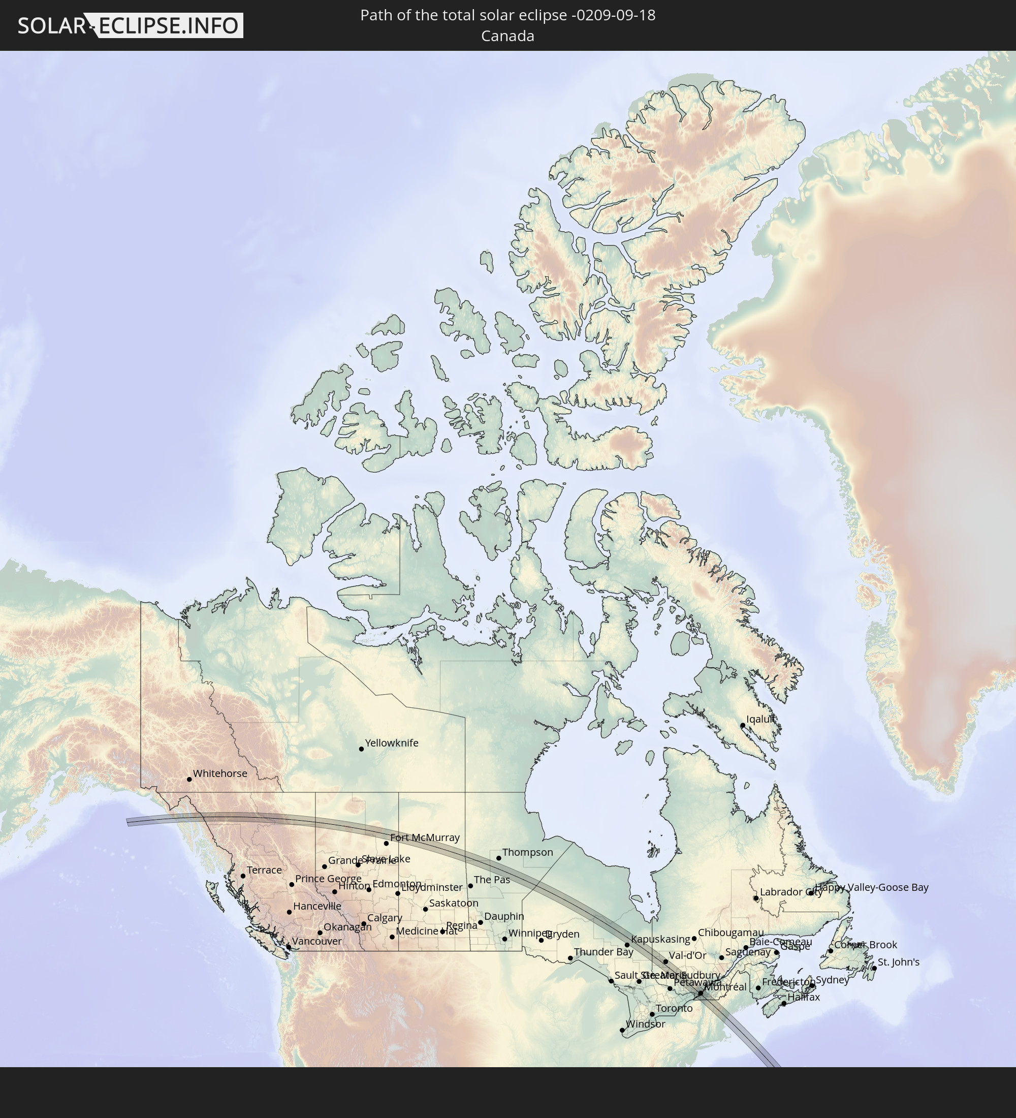 Wo kann man die Sonnenfinsternis vom 09/18/-0209 sehen?
