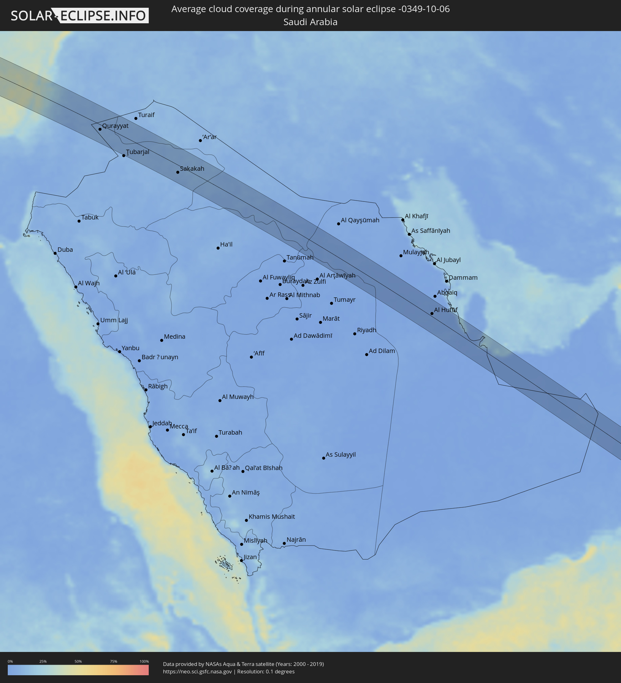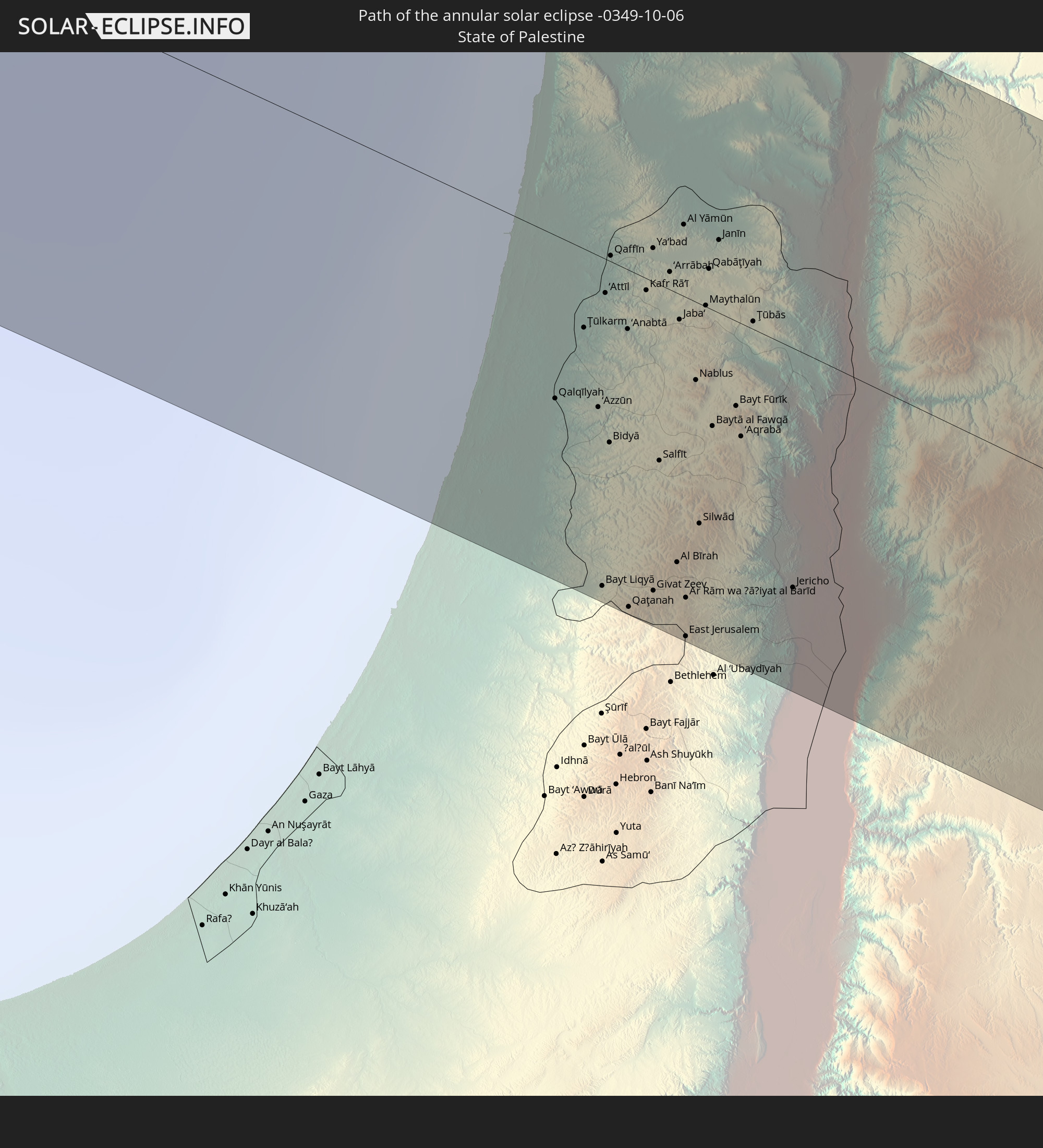 Wo kann man die Sonnenfinsternis vom 10/06/-0349 sehen?