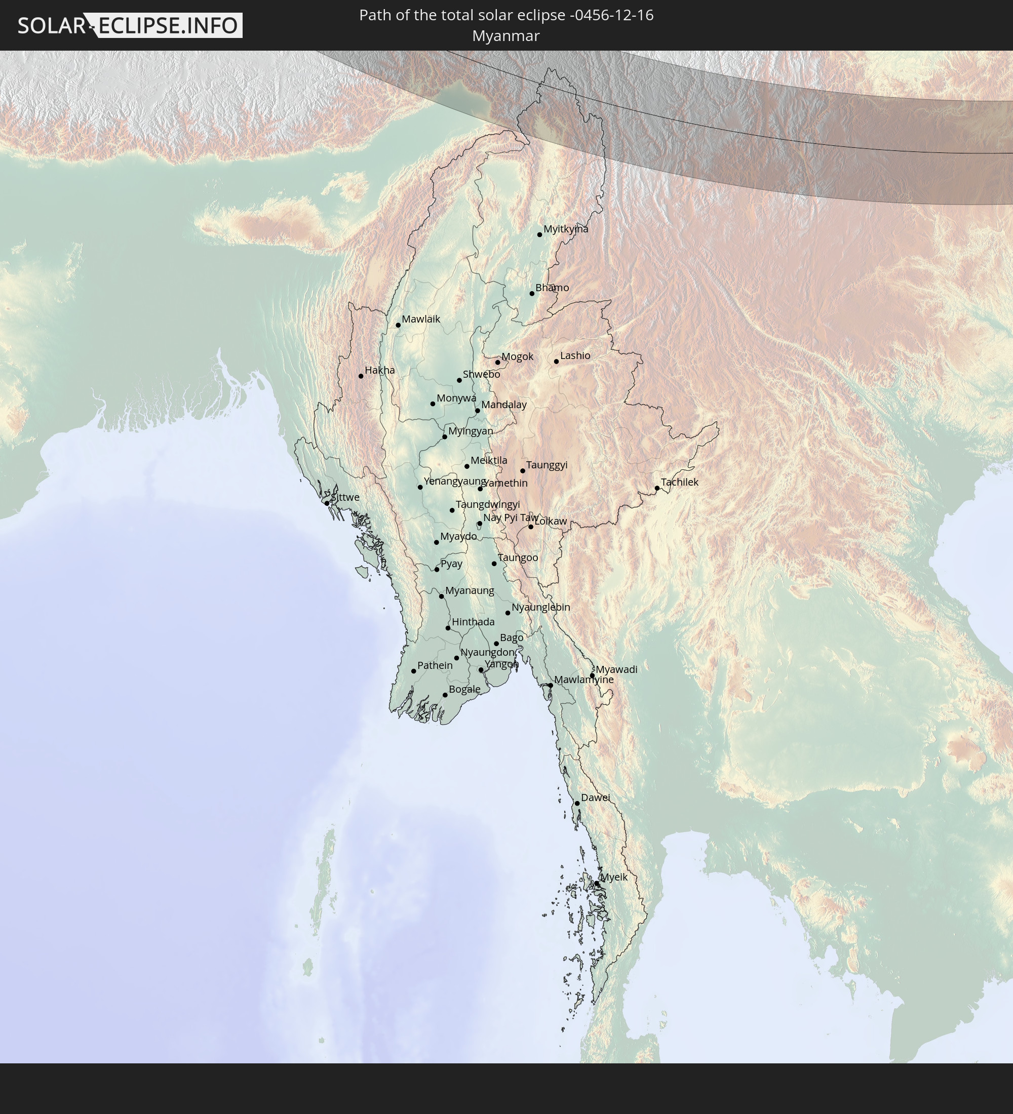 Wo kann man die Sonnenfinsternis vom 12/16/-0456 sehen?