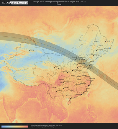 The following maps show the average cloud coverage for the day of the annular solar eclipse.
