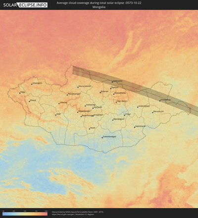 The following maps show the average cloud coverage for the day of the total solar eclipse.