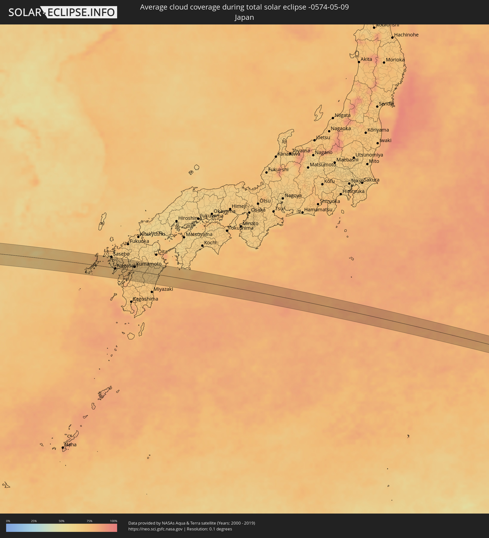 Wo kann man die Sonnenfinsternis vom 05/09/-0574 sehen?