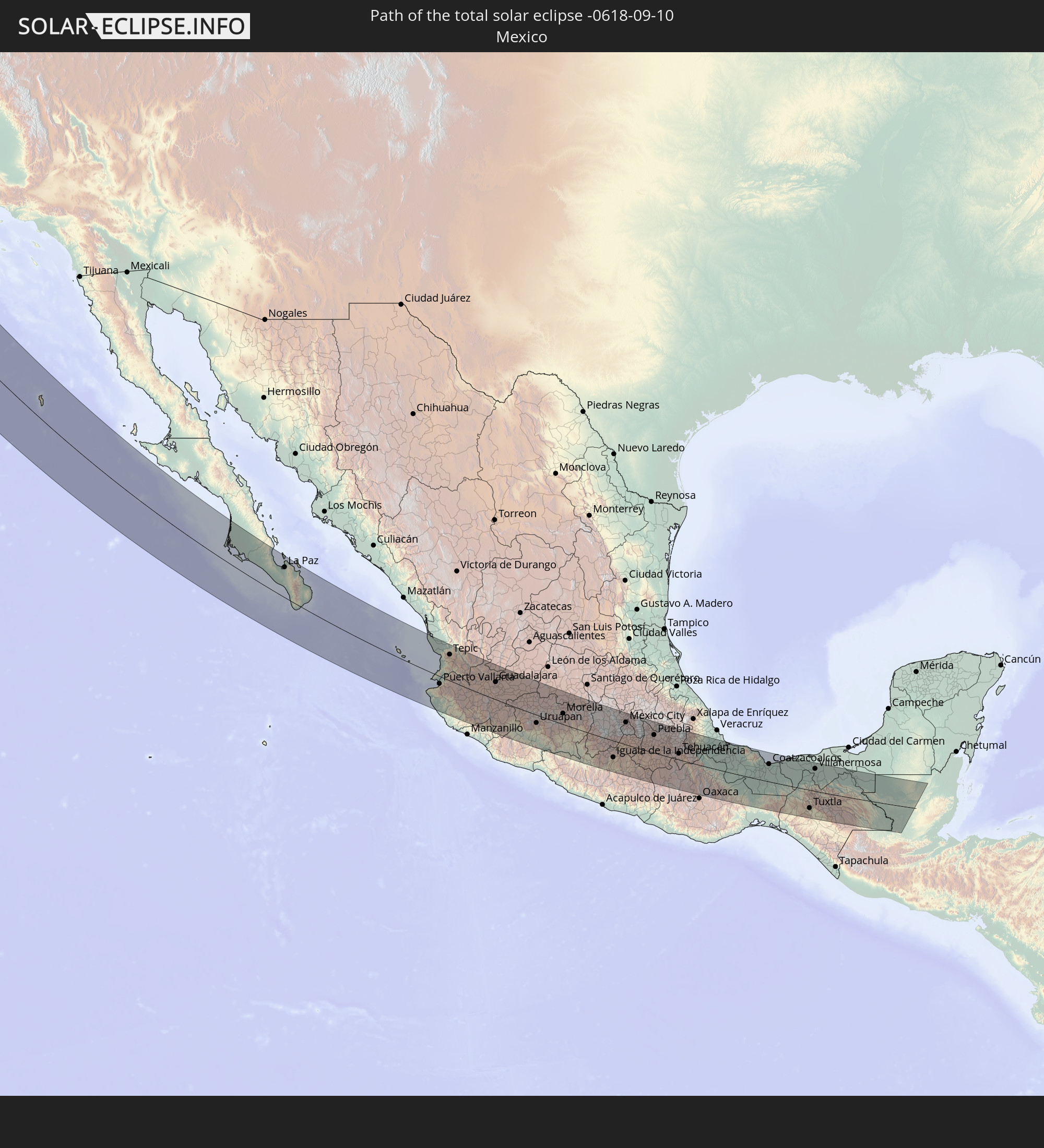 Wo kann man die Sonnenfinsternis vom 09/10/-0618 sehen?