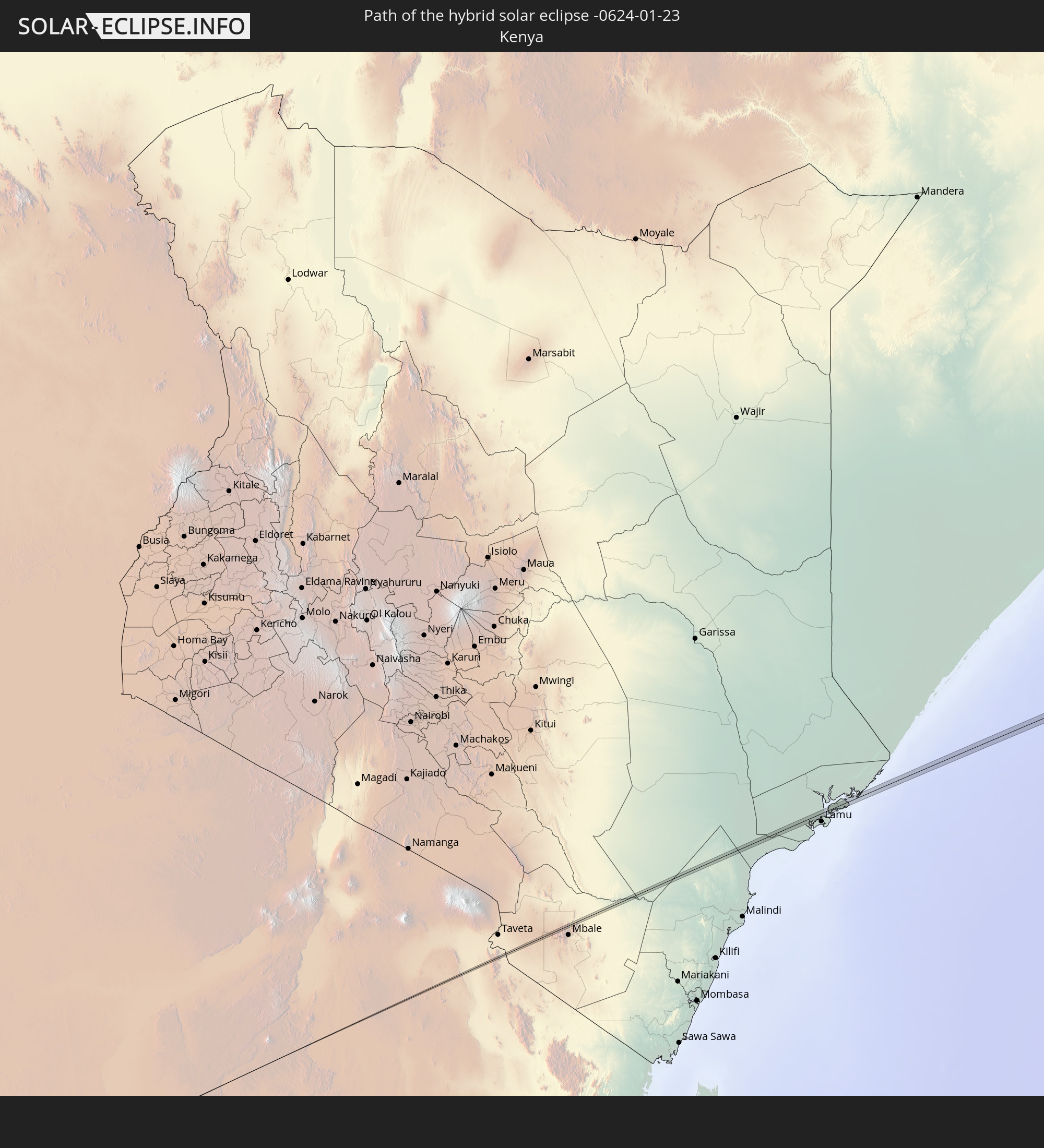 Wo kann man die Sonnenfinsternis vom 01/23/-0624 sehen?
